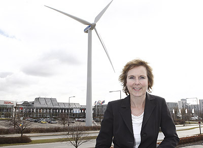 Kl. 12.00 rettede klimaministeren fokus mod den 75 meter høje Vestas-vindmølle, der som et synligt tegn på vinterens helt store klimatopmøde i Bella Center blev sat i gang med at producere strøm. Ikke mindre end 1.600.000 kilowattimer kommer den imponerende vindmølle til at producere det næste år, hvilket kan omregnes til strøm til ca. 300 danske gennemsnits-husstande i et år.