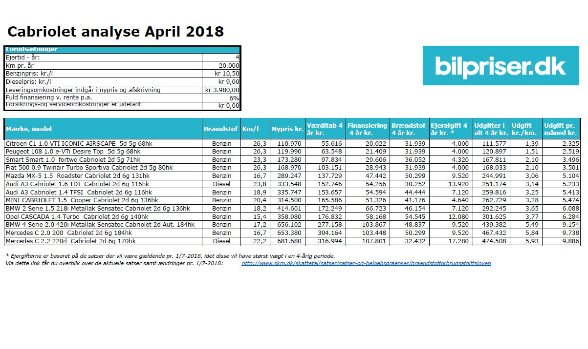 Åbne bilers totaløkonomi