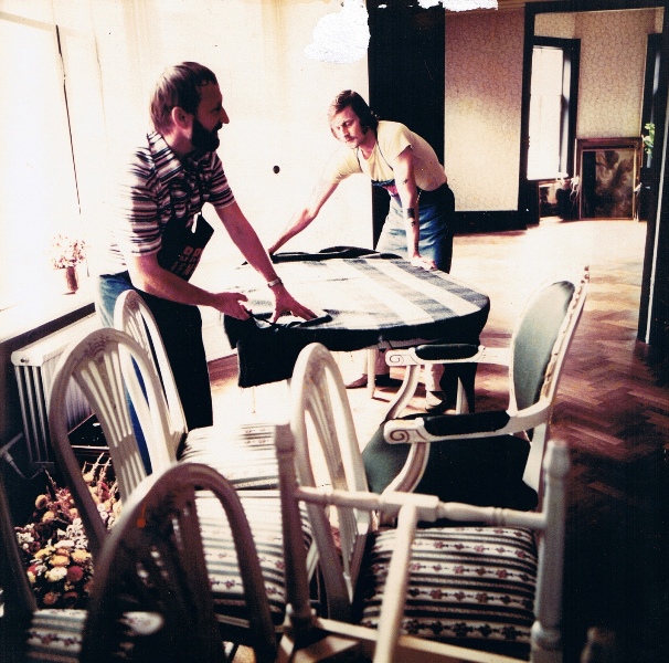 Igennem årene har Brdr. Jensen Møbeltransport formået at vækste støt og roligt, blandt andet gennem strategiske opkøb og udvikling af nye flyttekoncepter. Her ses Frank Jensen og en tidligere medarbejder, Bjarne Christensen, i gang med en liebhaverflytning i starten af 1970'erne.