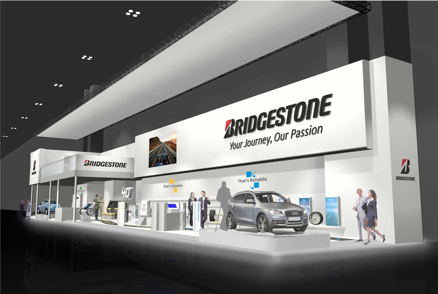 Tre separate zoner på den 284m² stand (Hal 8) viser de besøgende de tre vigtigste elementer i Bridgestone's fremtidige strategi: miljø, innovation og sikkerhed.