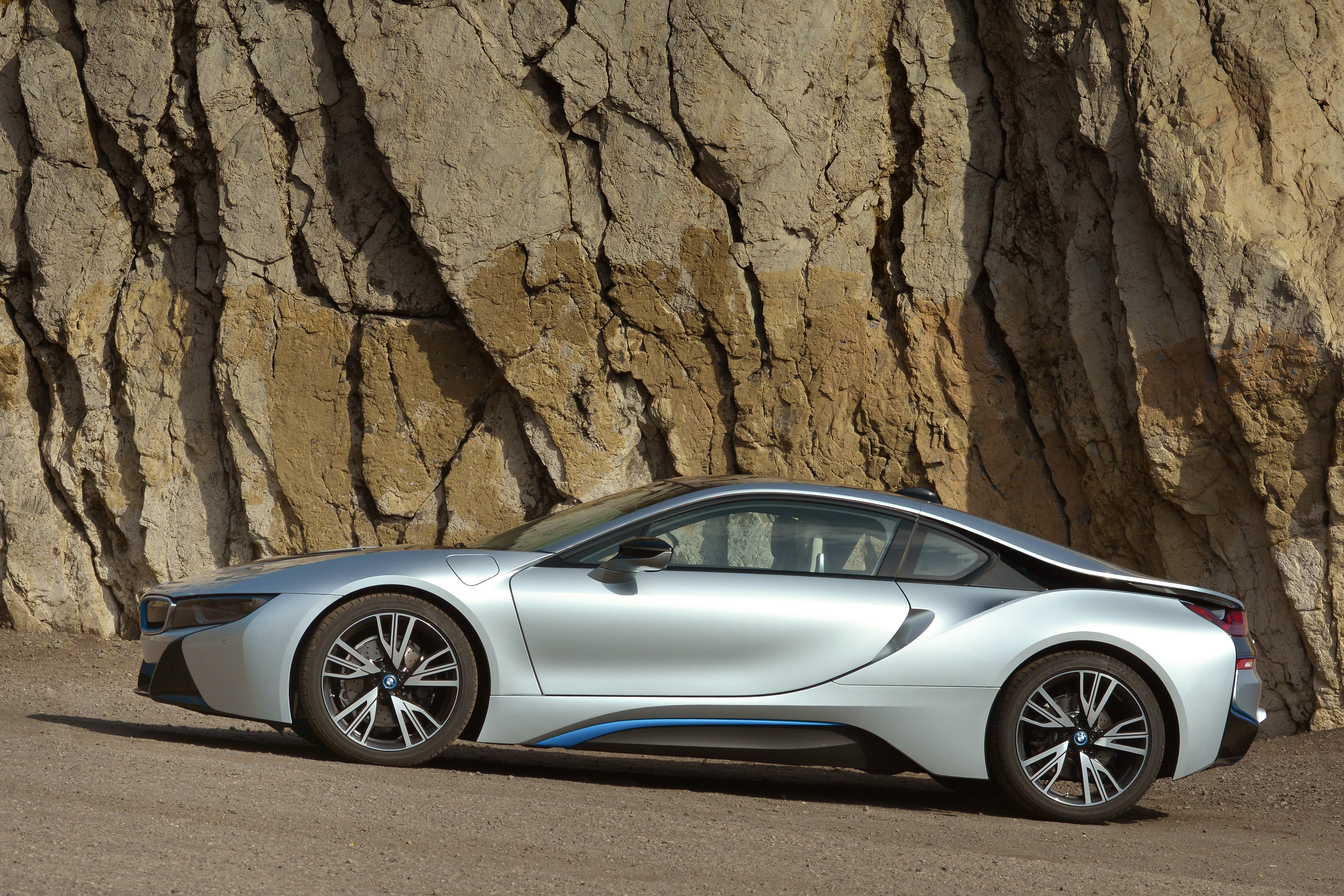 BMW i8 er måske årets mest omtalte supersportsvogn med dens avancerede hybridteknik, der giver superpræstationer og lavt forbrug. Drivlinien er ikke det eneste, der er specielt, for dækmonteringen er ganske særlig. Dækkene er godt nok Bridgestone Potenza S001, der er standardmontering på flere sportsvogne, men dimensionen er ikke helt standard. Groft sagt svarer størrelsen af det bredeste dæk til det, der sidder på andre supersportsvognes foraksel.