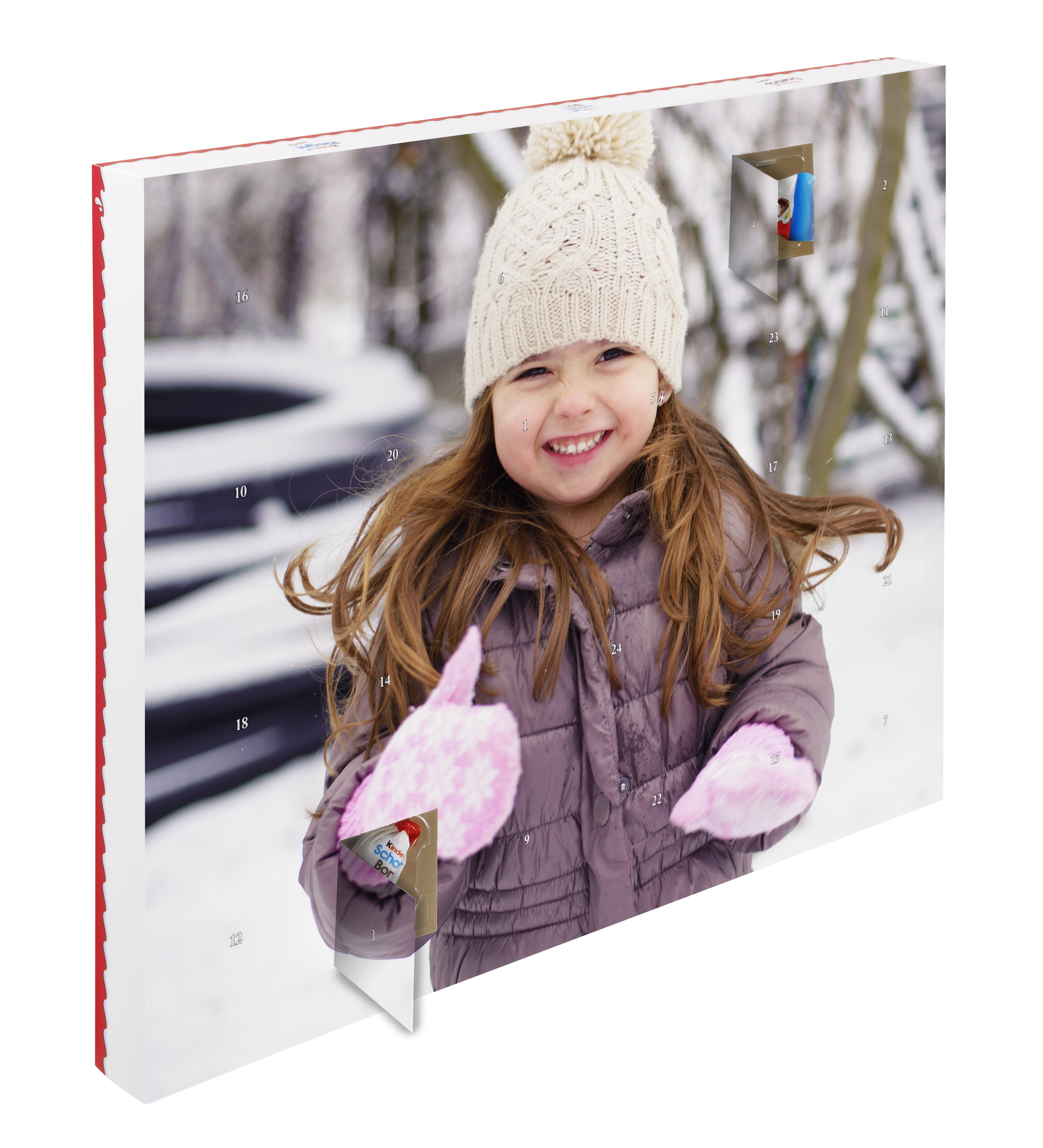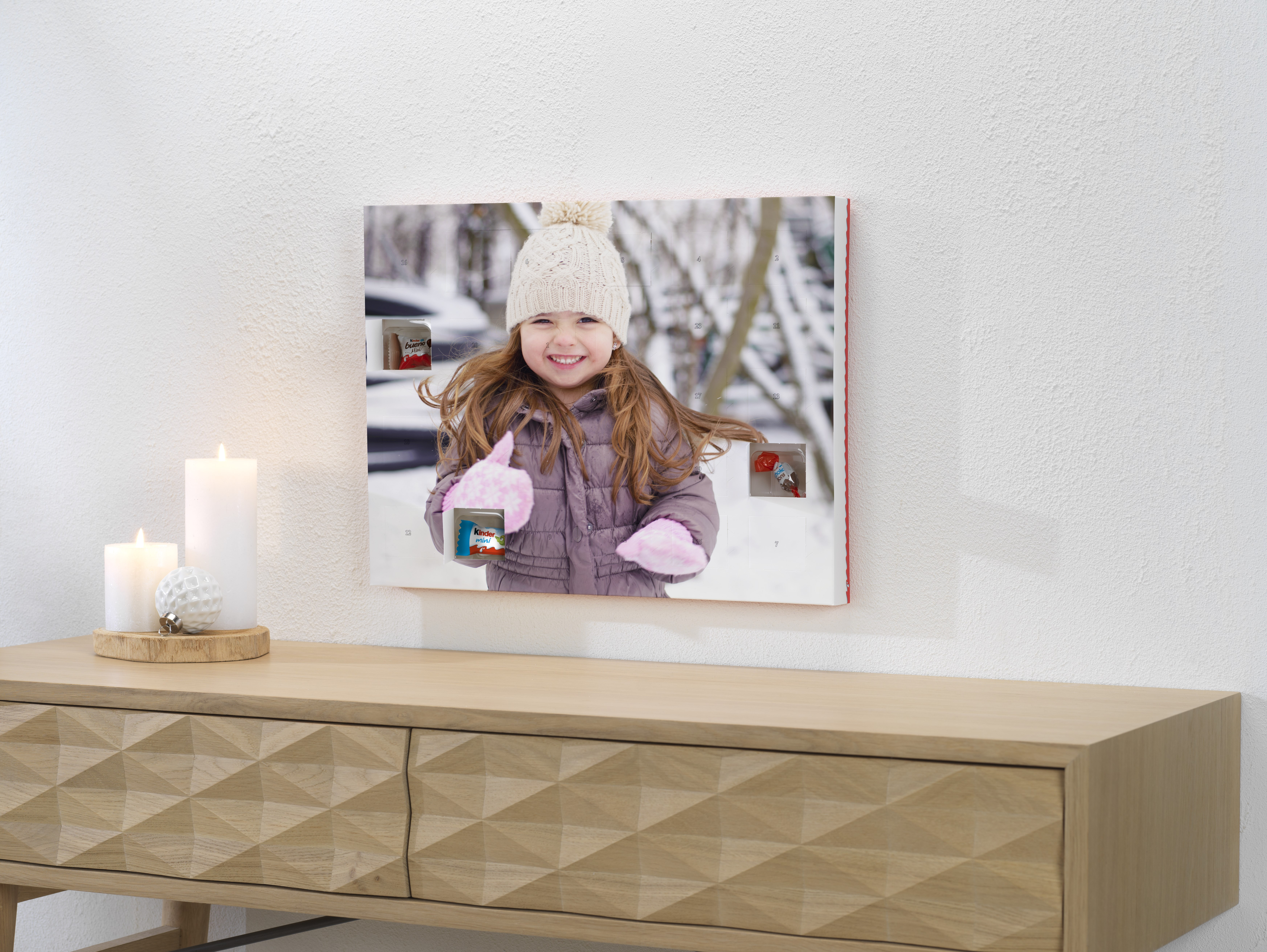 Chokoladejulekalenderne fra CEWE fremstår på én gang både klassiske og personlige. Kalenderne er fyldt med enten mælkechokoladekugler i kulørt papir, med chokolader fra Ferrero Pralinen eller med yndlingschokoladerne fra Kinder®.