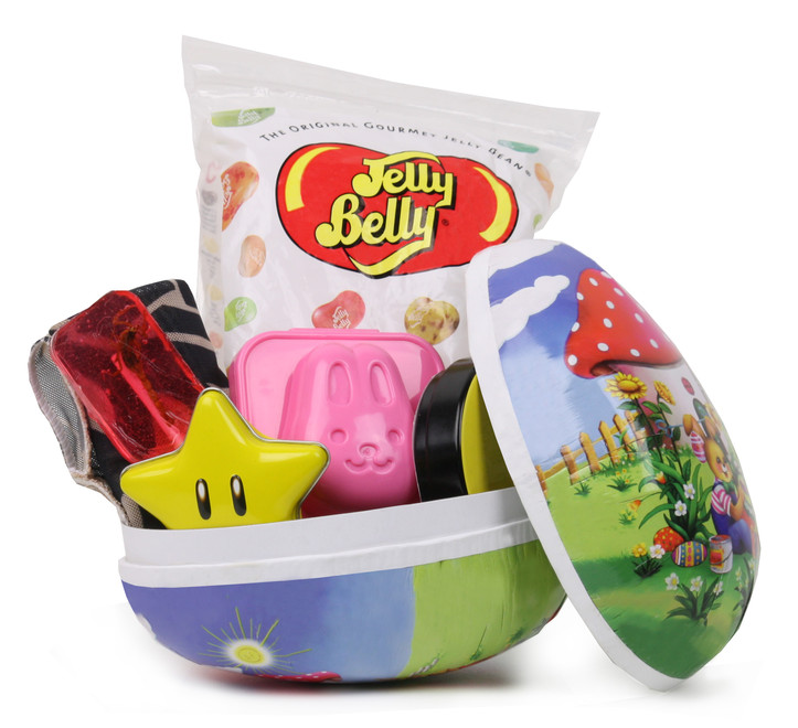 Normalt er de fine pap-påskeæg med påskemotiver fyldt med chokolade, men Coolstuff har fyldt et æg med små sjove gadgets, som skorpionslikkepinde, Nintendo-slik og tattoo-ærmer! Overrask din familie med dette anderledes CoolStuff påskeæg.