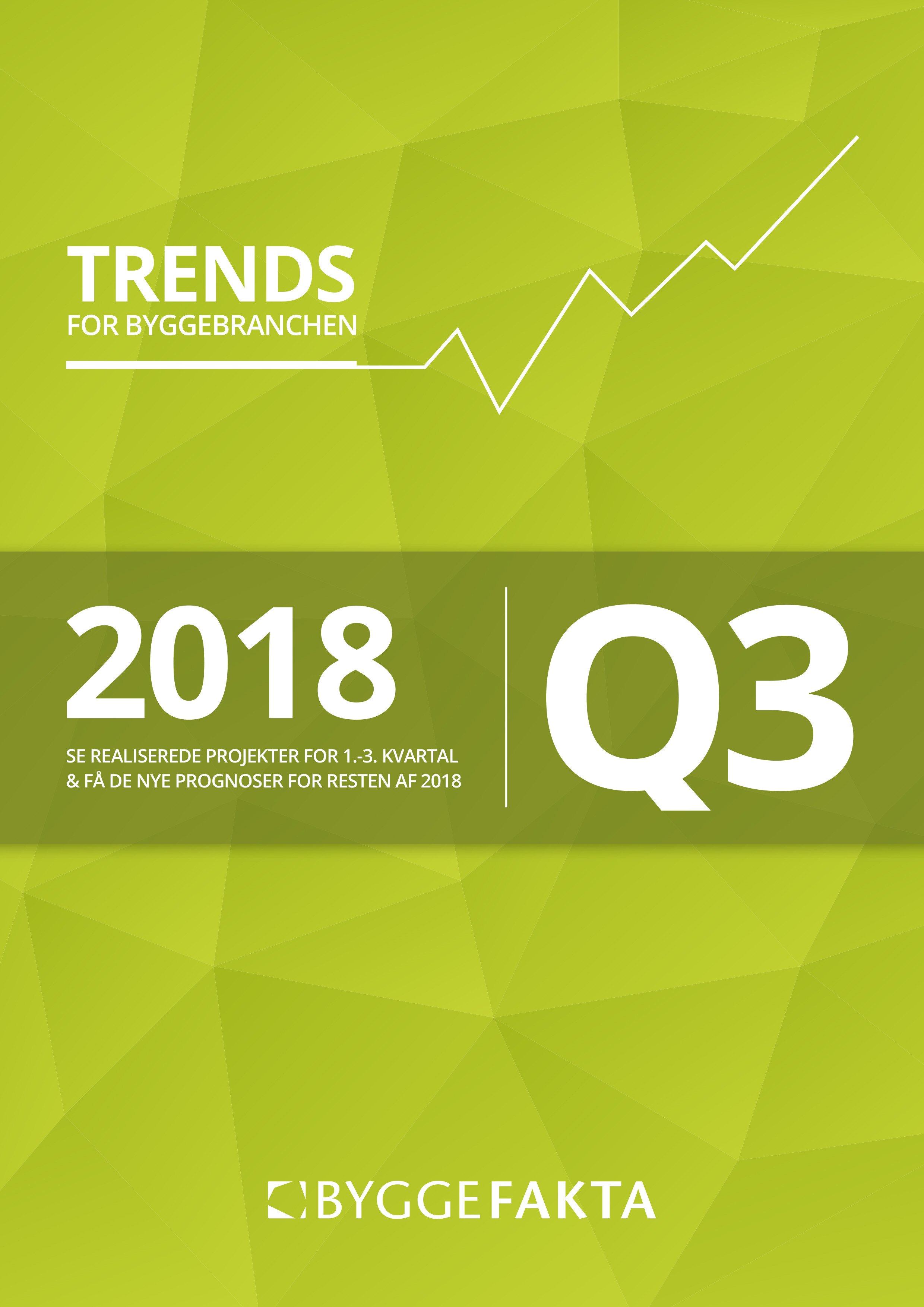 Rapporten ”Trends for byggebranchen Q3 2018” er en gratis rapport, som er udgivet af Byggefakta A/S. Rapporten indeholder prognoser for det professionelle byggeri i 2018, efter 3. kvartal er realiseret. Rapportens data omfatter både offentlige og professionelle private byggeprojekter. Tallene dækker ikke Hr. og Fru Jensens byggeri af et nyt parcelhus eller en ny carport. Ved indsamlingen af informationer til rapporten har researchafdelingen hos Byggefakta været i kontakt med beslutningstagerne på hvert byggeprojekt op til 10 gange. Dermed er der samlet set gennemført ca. 100.000 research-interviews fordelt på 13.000 byggeprojekter for at tilvejebringe og verificere rapportens data.