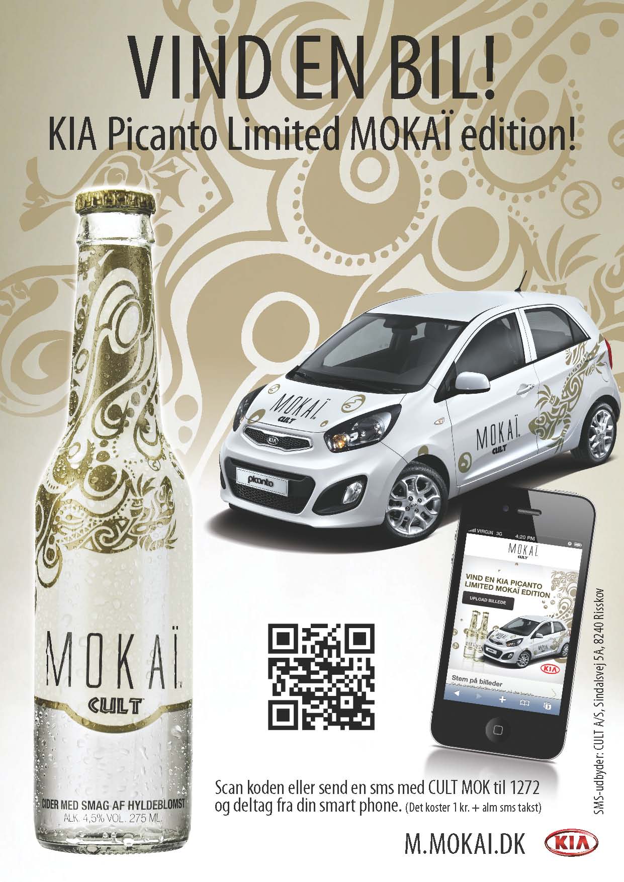 Det er også muligt at komme til konkurrencen direkte fra sin smart phone via en mobil side m.mokai.dk hvor man også kan finde nærmeste MOKAÃ forhandler, se en præsentationsvideo af den nye KIA Picanto m.m. (Scan QR koden eller send en sms med "CULT MOK" til 1272.)