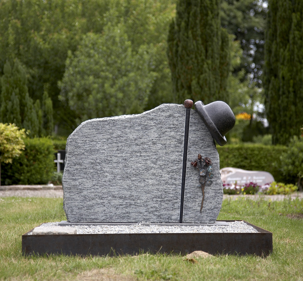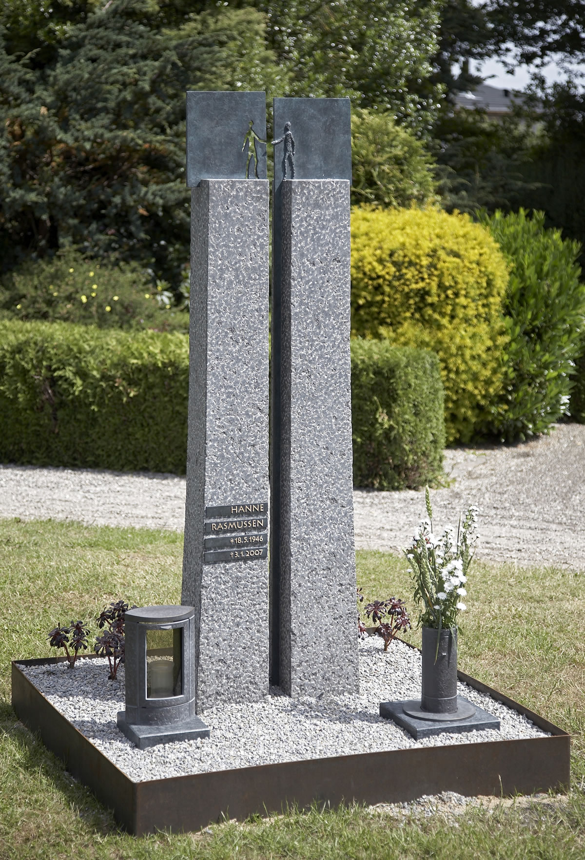 Det personlige gravstedGravstedet er et fysisk og konkret mindested, som kan danne centrum for de efterladtes sorgbearbejdning, og samtidig er det et spor, afdøde har sat i livet. På gravstenen kan man fx sammenfatte det levede liv med datoer, fødested, dødssted, referencer til erhverv, fritid eller en altoverskyggende passion. Hvis afdøde tilbragte mange år i Canada, kan stenen udsmykkes med et par canadiske ahornblade - eller en flyvernål, en fiskestang, en jagthund osv. Gravpladsen bliver således en biografi, der fortæller om afdødes færden. Er der tale om et større familiegravsted, som typisk går i arv, bliver gravstedet også symbol på familiens tilhørsforhold. Her kan efterfølgende generationer 'finde' oldemor og tænke over, at hun blev næsten 80 år, eller at hun levede ni år, efter oldefar døde osv.