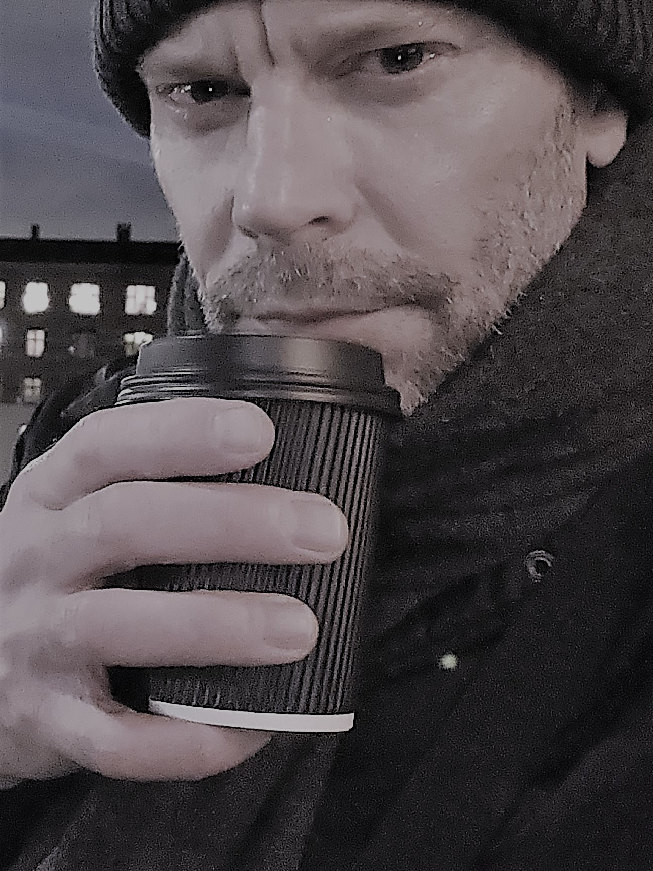 Kun en ting manglede for at fuldende dette øjeblik. En coffe to go. Glem alt om barista- kaffebarer, den nærmeste kaffe var at få på en benzintank ganske nær Sankt Jørgens Sø. Og den var himmelsk at gå med på isen.......
