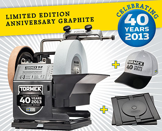 Tormek fejrer at det er 40 år siden, at den allerførste Tormek vådsliber blev produceret! Siden 1973 har Tormek sat nye standarder for slibning af værktøj gennem sit unikke design og en række innovative jigs/holdere og tilbehør. Tormek fejrer det med en jubilæumsudgave af deres kendte Tormek vådsliber T7.