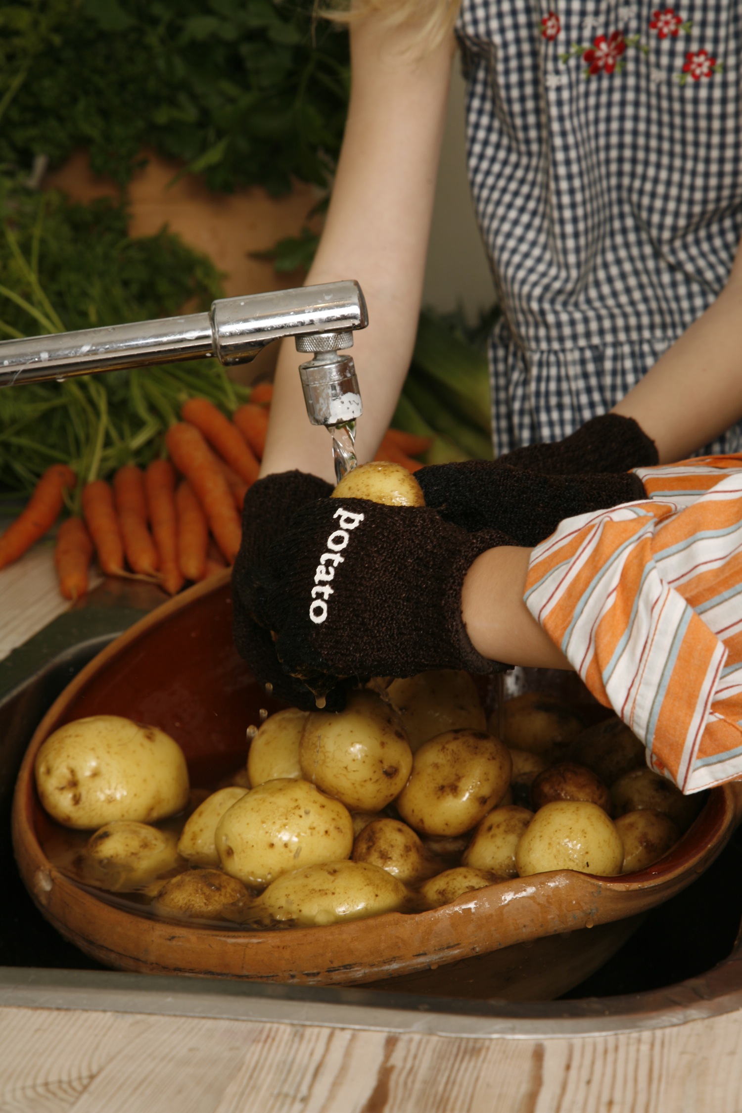 Gør dig selv klar til en fornøjelig stund i køkkenet når du med et snuptag skal ordne dagens heldige kartoffel. Børnene kan også være med, de kan med handsker, som passer til den lille hånd, hygge sig med at hjælpe til, på den sjove og ufarlige måde.