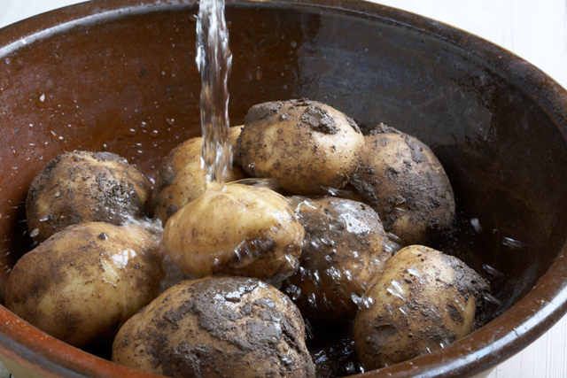 Så hvis dit nytårsfortsæt er at spise sundere, spare tid og miljø eller blot mangler en god værtindegave så hold udkig efter skrubbehandskerne hos landets førende varehuse eller isenkræmmere og led efter de mørke og jordede kartofler i din dagligvare butik - så har du den perfekte kombination
