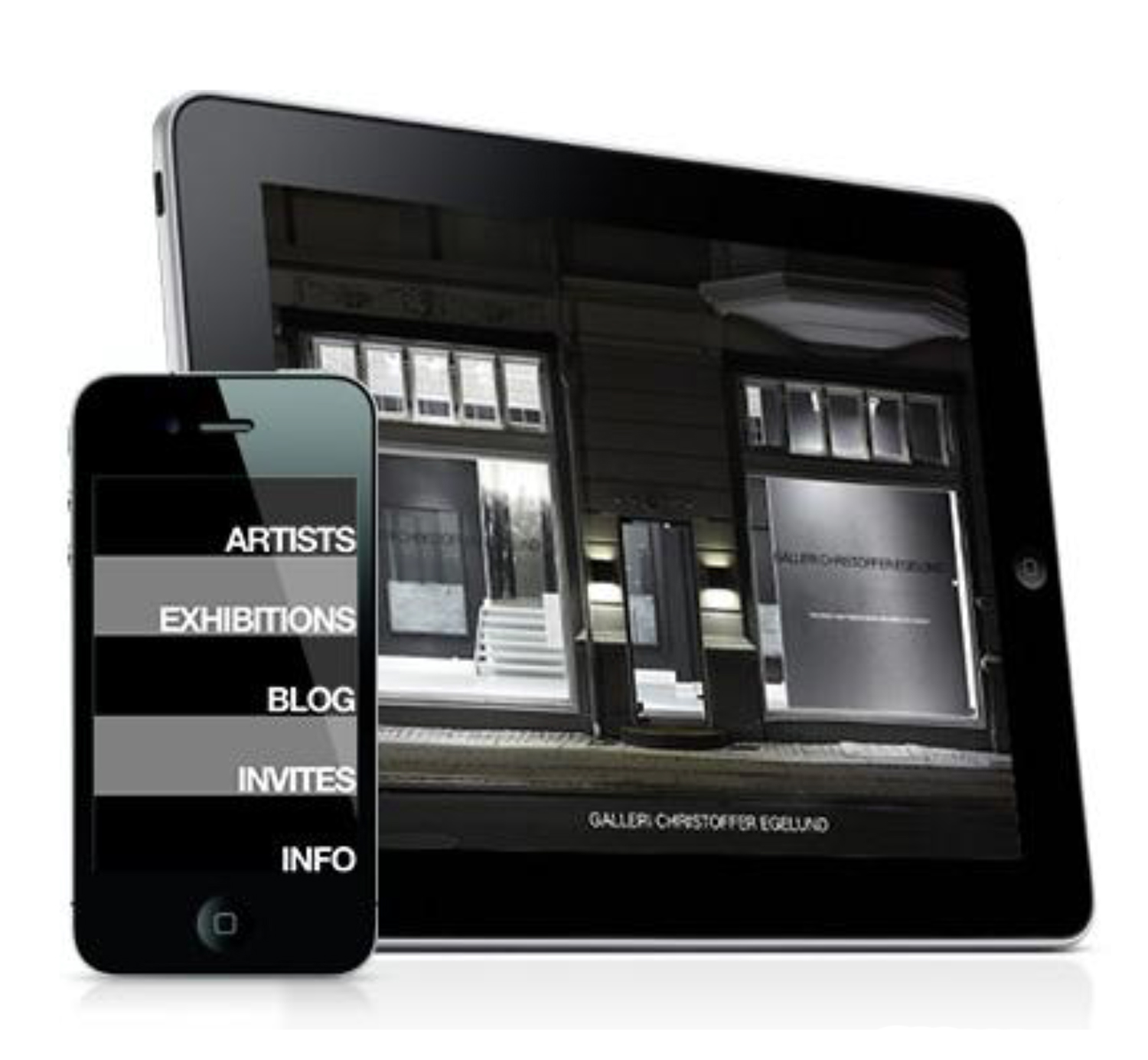 - Vi er ét af de første gallerier i Europa, hvis ikke det første, der har fået en Galleri App, og det ligger i det hele taget ret godt i tråd med filosofien bag galleriet. Vi bestræber os på at være innovative på så mange fronter som muligt og er det altså nu også på den digitale front', lyder der fra Christoffer Egelund, der er manden bag Galleri Christoffer Egelund i Bredgade.