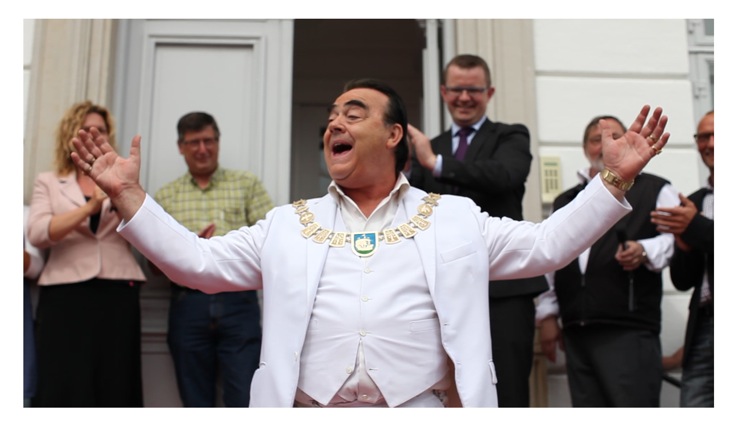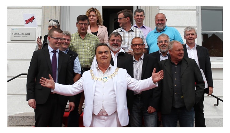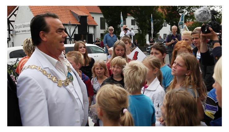 Borgmester Morten Andersen overlod for en stund byens borgmesterkæde til Jørgen - kendt for sine store armbevægelser i KiMs' reklamer - som en anerkendelse af hans bedrifter ude i den store verden. Ifølge chipsproducenten er Jørgen vokset op på Nordfyn, hvor også KiMs' chipsfabrikker har hjemme, og hæderen af det fiktive bysbarn går derfor godt i spænd med kommunens ønske om at være et sted, hvor folk altid vil blive taget imod med åbne arme.