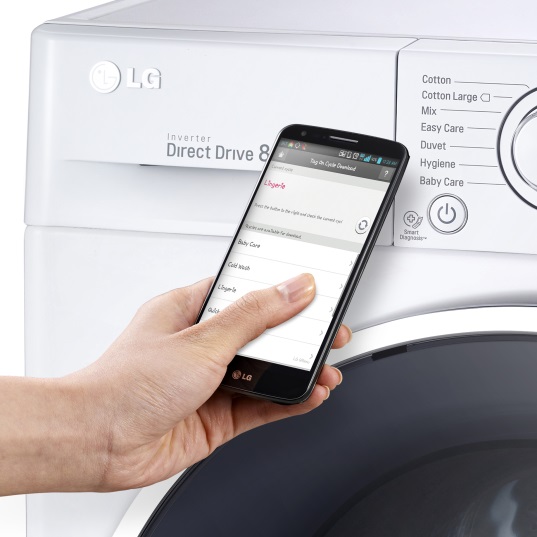 LG F14U2TDN0 er LG's første vaskemaskine med NFC-teknologi*, som gør det enkelt at installere nye vaskeprogrammer med din smartphone. Det betyder, at du udover de 14 tilhørende standardprogrammer, let kan vælge mellem adskillige specialprogrammer til din vaskemaskine.