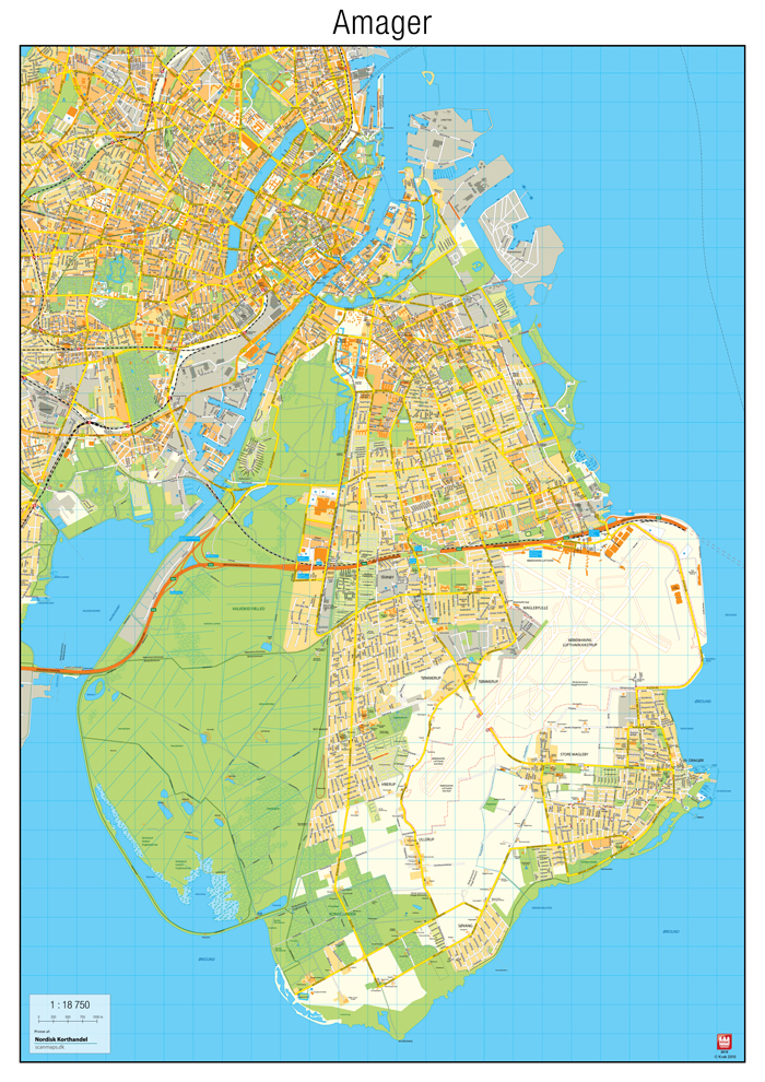 Nordisk Korthandel præsenterer et nyt vægkort som dækker hele Amager, så nu er det igen muligt at få overblikket. Kortet er baseret på Kraks Kort over København og Omegn 2010 og fremstår tydeligt og overskueligt.