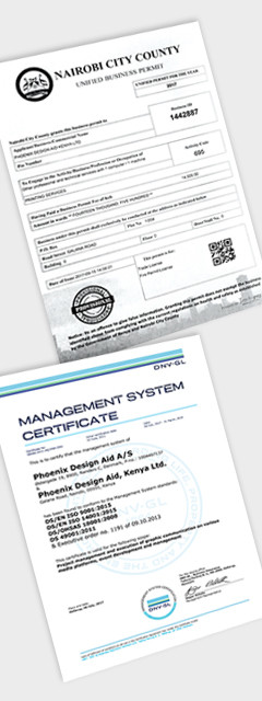 Flid og høj kvalitet kombineret med teknisk ekspertise og sublim kundeservice er alle kompetencer og værdier, der udgør byggestenene i det, der bliver Kenyas førende designbureau inden for projektledelse, grafisk kommunikation på et utal af platforme og event-udvikling og -ledelse. Virksomhedens services er målrettet nichemarkeder og skiller sig især ud på grund af virksomhedens stærke miljøprofil. Ligesom moderselskabet er Phoenix Design Aid Kenya Ltd. certificeret inden for socialt ansvar (DS 49001), kvalitet (ISO 9001), miljø (ISO 14001), arbejdsmiljøledelse (OHSAS 18001), FSC CoCTM og CO2 neutralitet.