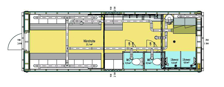Endvidere er isoleringen i højklassemodulet øget med 25-30 % i loft, gulv og vægge, hvilket reducerer varmeforbruget med ca. 20-25 %, oplyser Lars Lysgaard. Modulet er ligeledes udstyret med et ventilationsanlæg med varmegenvinding samt hygrostatstyrede tørreskabe, som mange nok kender fra deres børns institutioner.