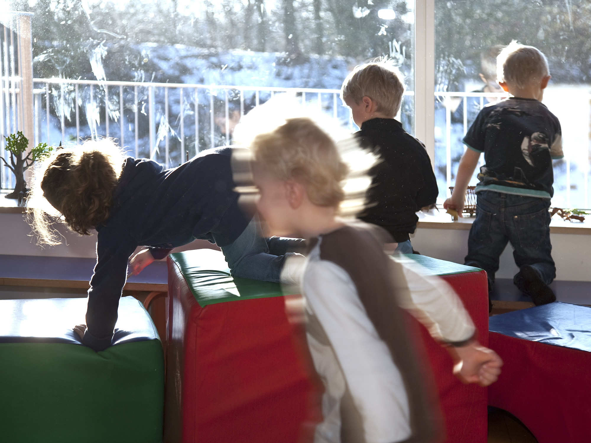 "Vinduerne i Børnehuset Toftekær er store og lyse. Nogen tror, at man i et passivhus skal isolere sig ud af alting og spare på vinduerne. Det er rigtigt, at en mur holder bedre på varmen end en rude, til gengæld bidrager den ikke med noget. Et vindue kan både lukke dagslys og varme fra solen ind", siger han og fortæller, at moderne ruder er så gode til at isolere, at de sagtens kan bidrage positivt til det samlede energiregnskab og gode indeklima i en bygning - også i en institution fyldt med småfolk, dampende gryder og vådt tøj.