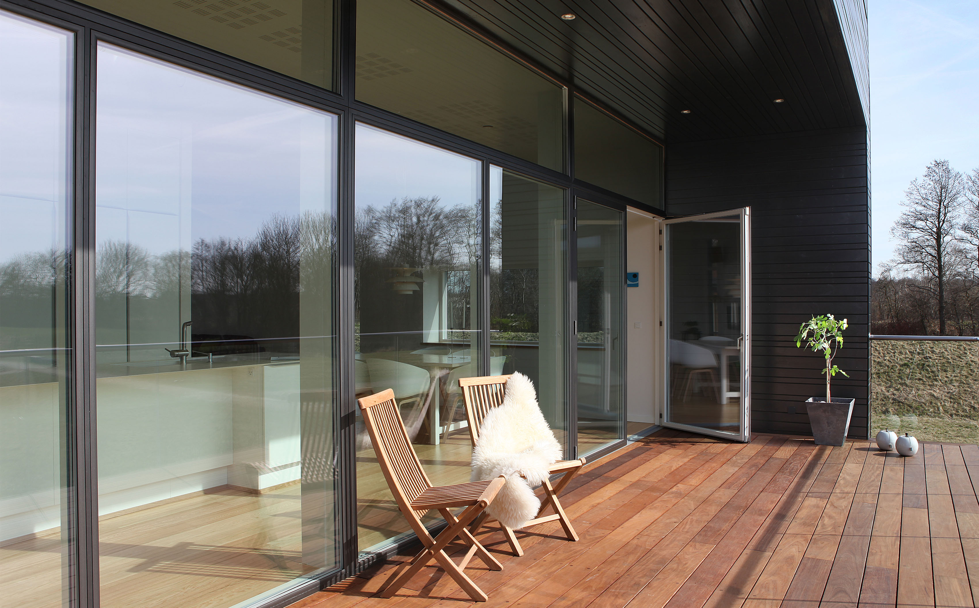 Da ruderne også skærmer for lys og varme om vinteren, anbefaler Rationel ikke at klæde hele huset i vinduer med solafskærmende glas.