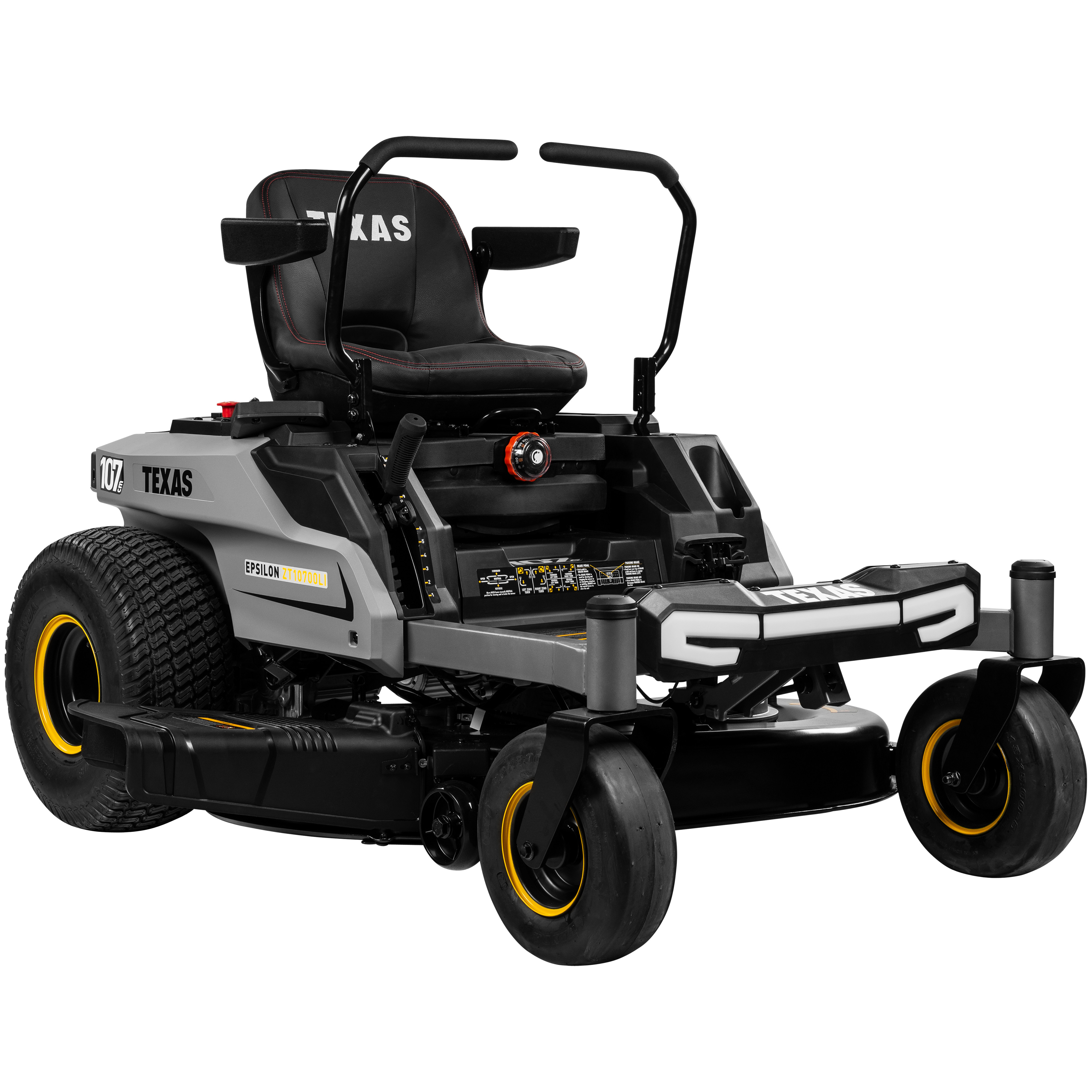 Med TEXAS' nye Epsilon ZT10700Li får du en imponerende og manøvredygtig zero zurn rider til selv de største græsplæner. Takket være de 360° svingbare forhjul og intuitive styrebøjler har du fuld kontrol, og zero turn-funktionen gør det muligt at vende på stedet, hvilket giver optimal fleksibilitet i både små og store haver. Den kraftige 72V-motor og det store 44 Ah batteri håndterer op til 6000 m² græsslåning per opladning.