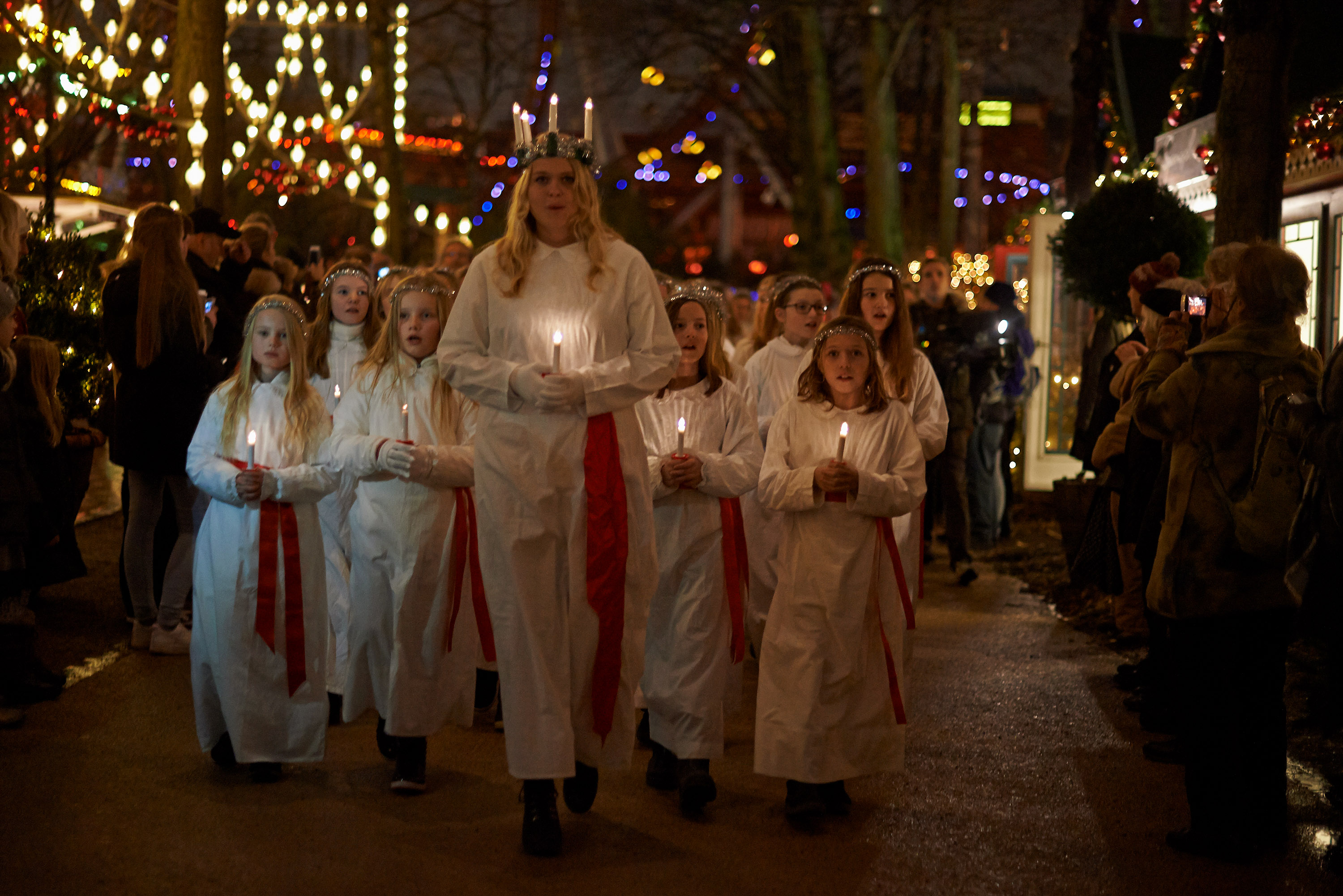 Søndag den 13. december hylder Tivoli legenden Lucia, der led martyrdøden for de fattige, med et stort optog bestående af 110 syngende piger. Luciaoptoget går gennem Carstensens have fra kl. 17:30 mens der bl.a. synges Nu bæres lyset frem.