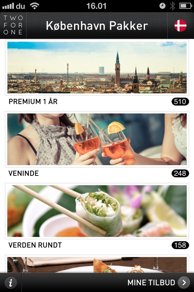 Konceptet er enkelt. Du køber en pakke fyldt med skønne to-for-en tilbud - for eksempel får du med Premium Pakken over 500 tilbud i et år for kun 349,-. Tilbuddene bruger du direkte fra mobilen og det er nemt med smarte features som kort, søgefunktionaliteter og muligheden for at lave favoritlister. Dermed har du eget private skattekort af skønne tilbud, skjulte perler og nye favoritter, der gør det sjovere og billigere at tage på opdagelse i København sammen med én, du har kær.