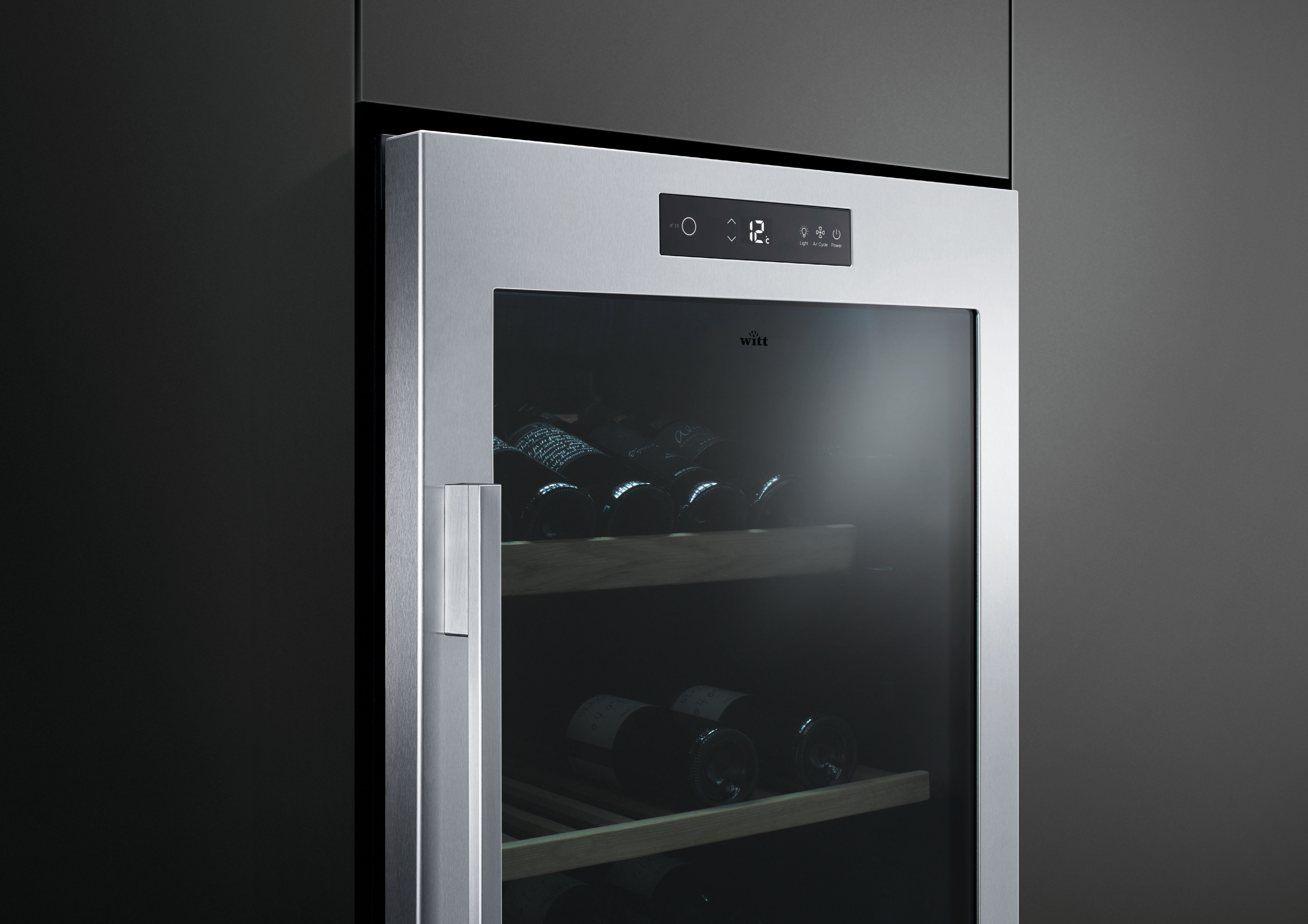 Witt vinskabe har to temperaturzoner, som kan indstilles individuelt mellem +5 - +20°C ved hjælp af touch-panelet. Et aktivt kulfilter sikrer en god luftkvalitet og forhindrer eventuelle lugte eller mados fra omgivelserne i at skade vinene.