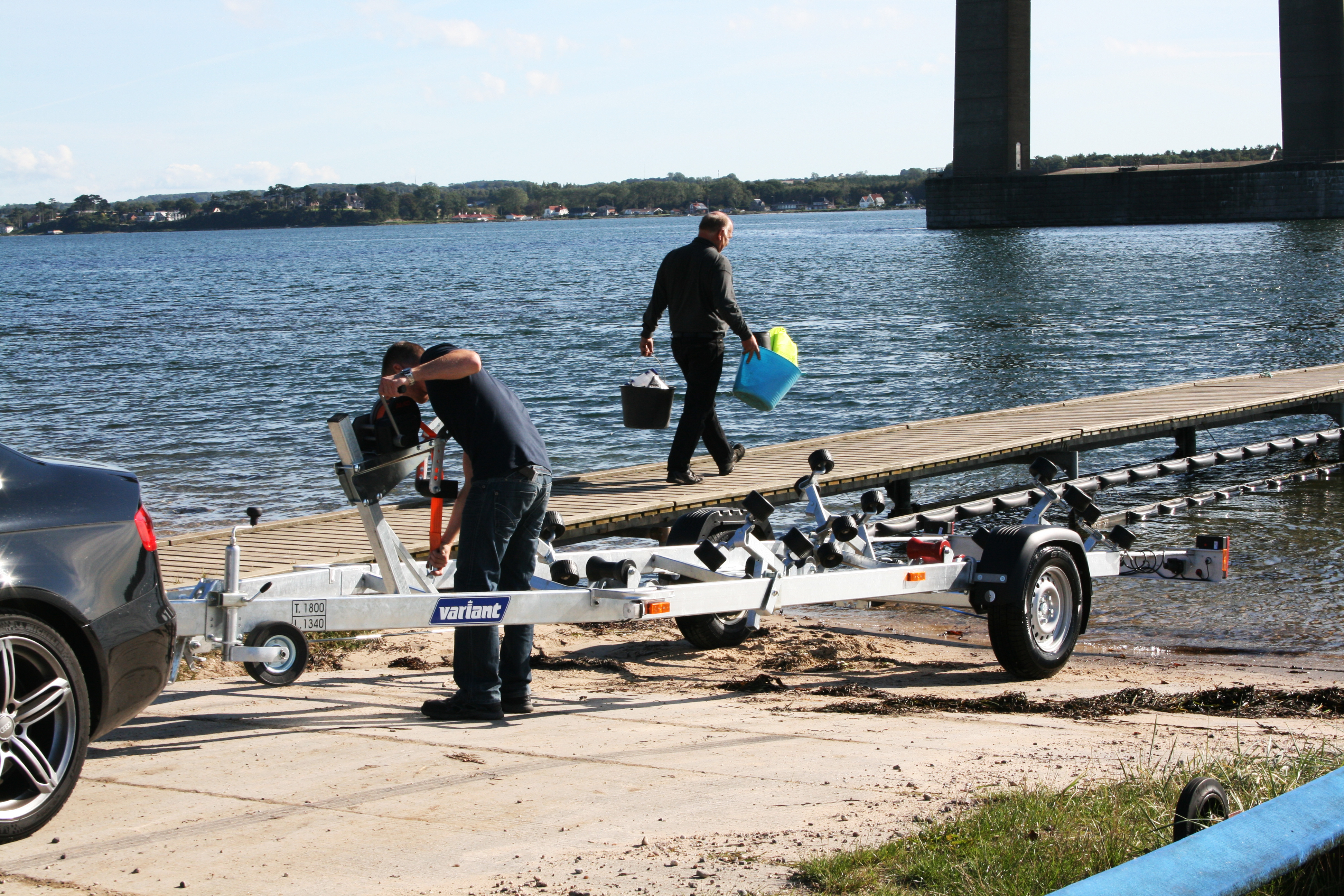 Bådtrailer ved at blive gjort klar