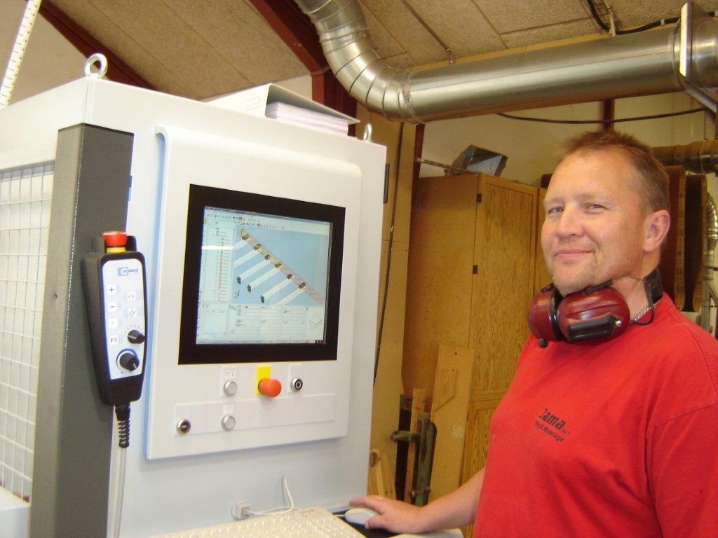Den ny CNC-maskine fra Homag bidrager ifølge tømrermester Ove Jensen både til mere effektiv produktion og til bedre kvalitet. - Vi budgetterer med en firedobling af salget, og med CNC-maskinen kan produktionen følge med. Samtidig sikrer den øget præcision og en fuldstændig ensartet forarbejdningskvalitet, siger han. Tømrermesteren fremhæver også, at maskinen både kan benyttes til udfræsning af trappetrin i træ, stål og beton samt andre trappedele. Således kan den bidrage til effektivisering, uanset hvilken trappetype der skal produceres.