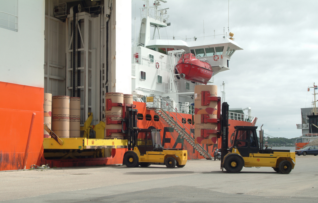 Billede 2: Hos H. Daugaard på Kolding Havn, der årligt håndterer 250.000 tons papir, har de ekstra leverancer skabt travlhed på kajen og i lagerbygningerne.