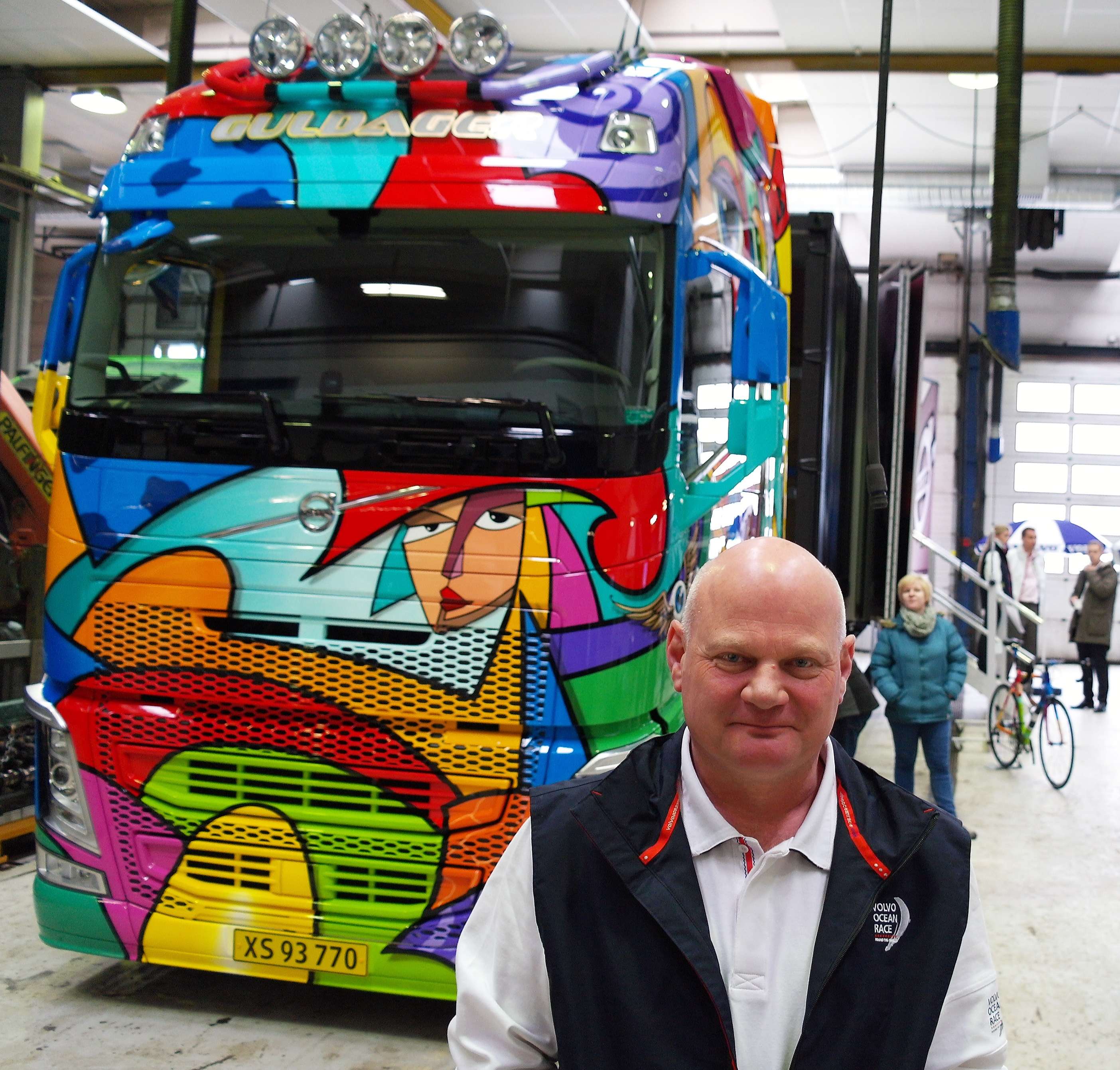 - Ray Hill er internationalt anerkendt for sine unikke lastbiludsmykninger. Til gengæld har han aldrig malet på et menneske, så vi udfordrede Hill til at dekorere vores model med samme flotte motiv, som han netop har malet på vognmand Henrik Guldagers nye Volvo. Og lastbilen bliver opstillet ved siden af, så tilskuerne selv kan bedømme, hvilken udgave der er flottest, smiler Keld Andersen, salgs- og marketingchef for Commercial Products hos dækfirmaet.