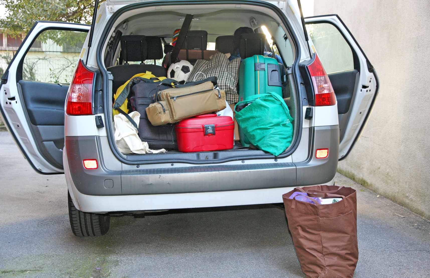4. Pak bilen rigtigt. Placer jeres tungeste bagage i bunden og så langt fremme som muligt. Stil bagagen ind under hattehylden og fastgør den, så løse genstande ikke ryger ind i kabinen ved hårde opbremsninger.