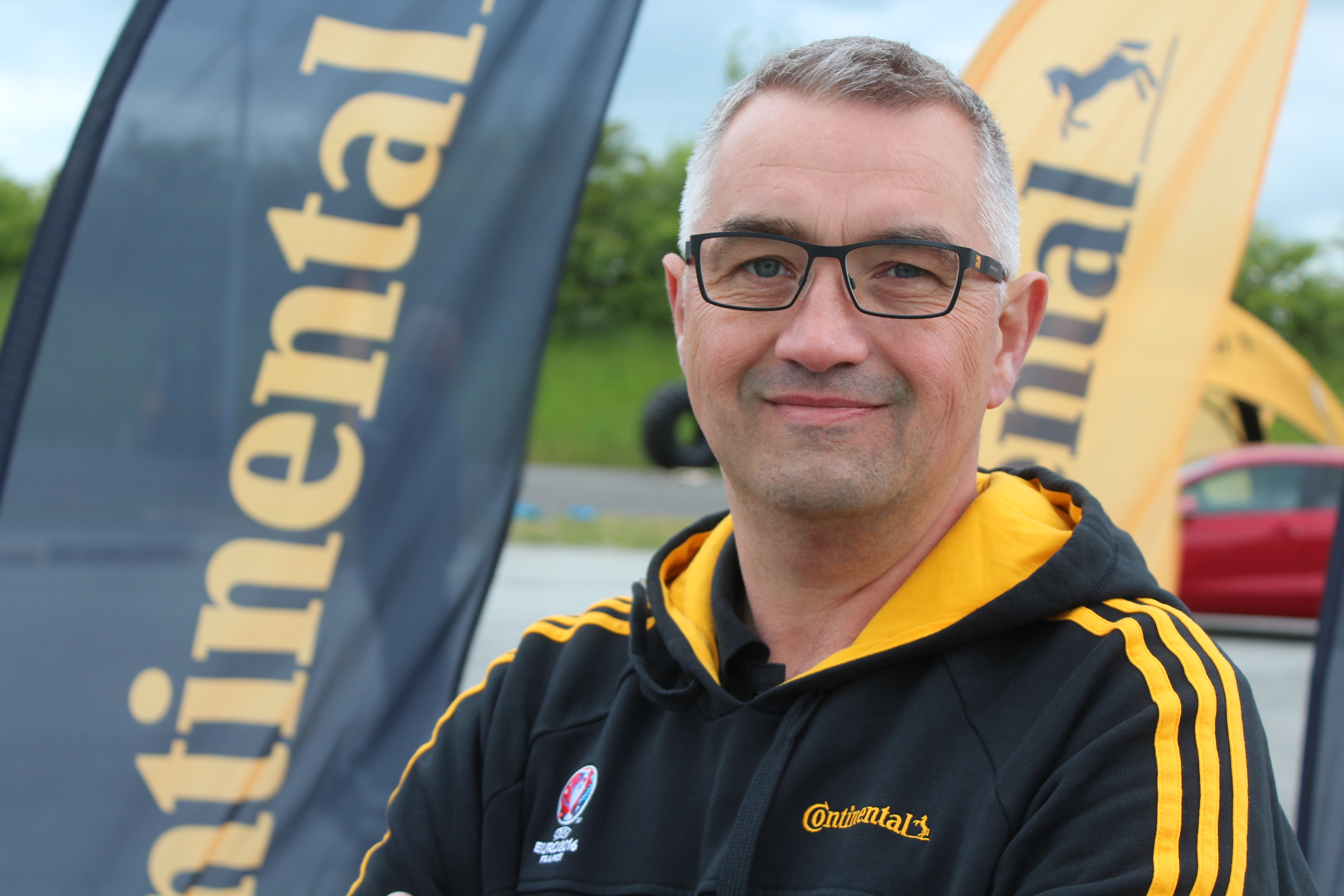 Frank Sønderby Larsen er netop fyldt 50 men ruller stadig derudaf med fuld fart - både professionelt og privat. Som salgschef i Commercial Speciality Tires i Continental har han ansvar for en portefølje af dæk til de køretøjer, der holder sig under 80 km/t - havnekraner, fejemaskiner, gummigeder, læssemaskiner og en lang række mere eller mindre obskure industrikøretøjer. Hans karriere startede dog med gaffeltrucks.