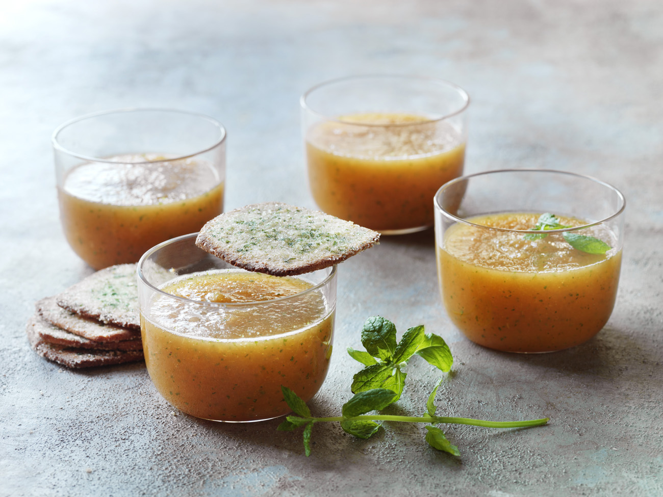 Til en lun sommeraften omkring grillen: Melonsuppe med grillede mynte-marcipan chips