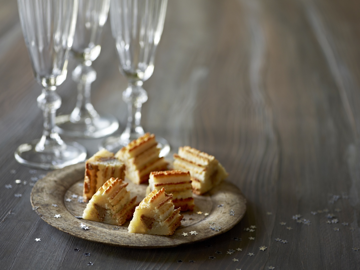 Lad kransekagen afkøle og skær den ud i mindre stænger eller mundrette stykker. Anret kransekagerne på fad og servér.