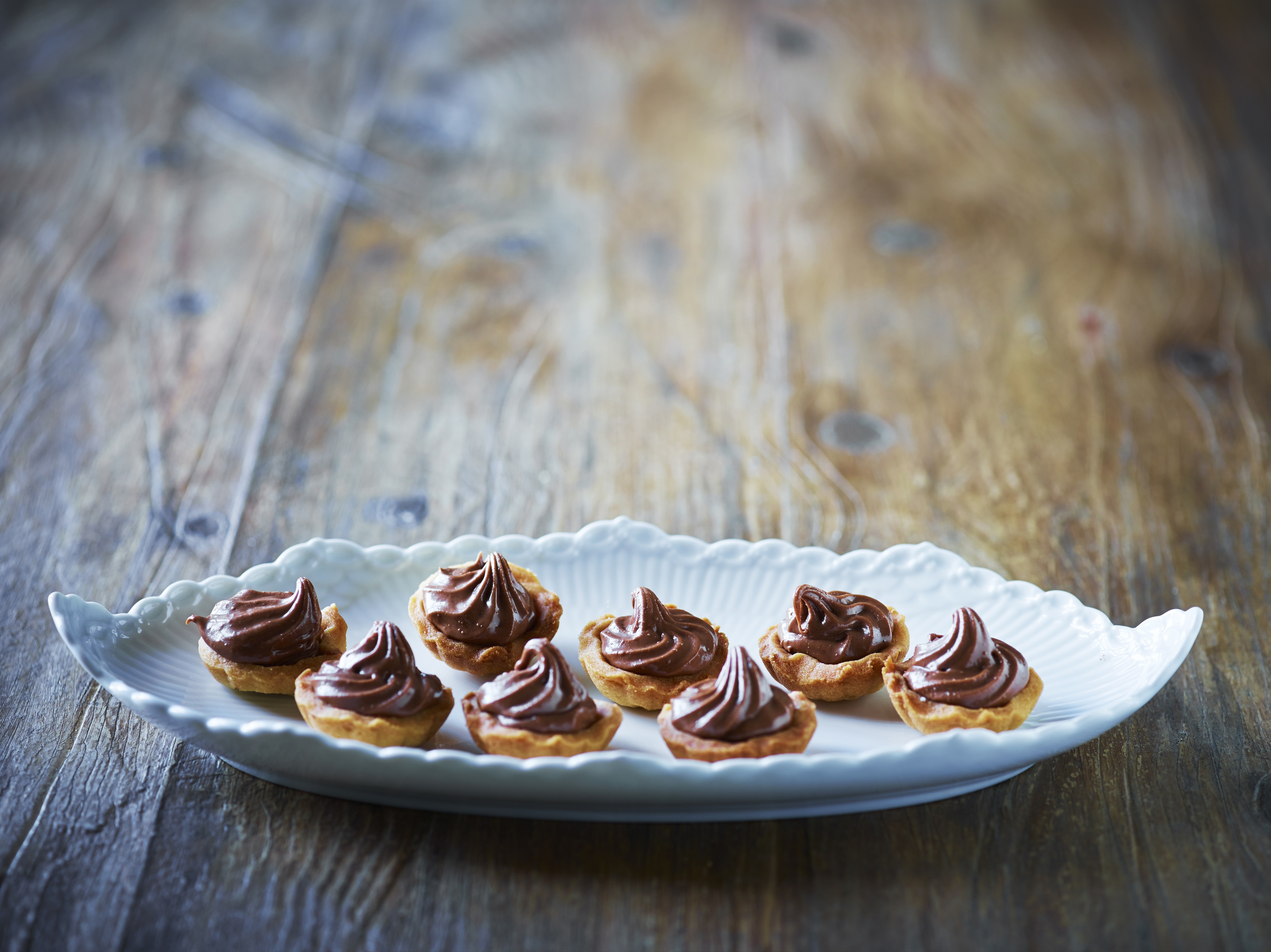Tag kagerne ud af formene og sprøjt med nougatcreme.