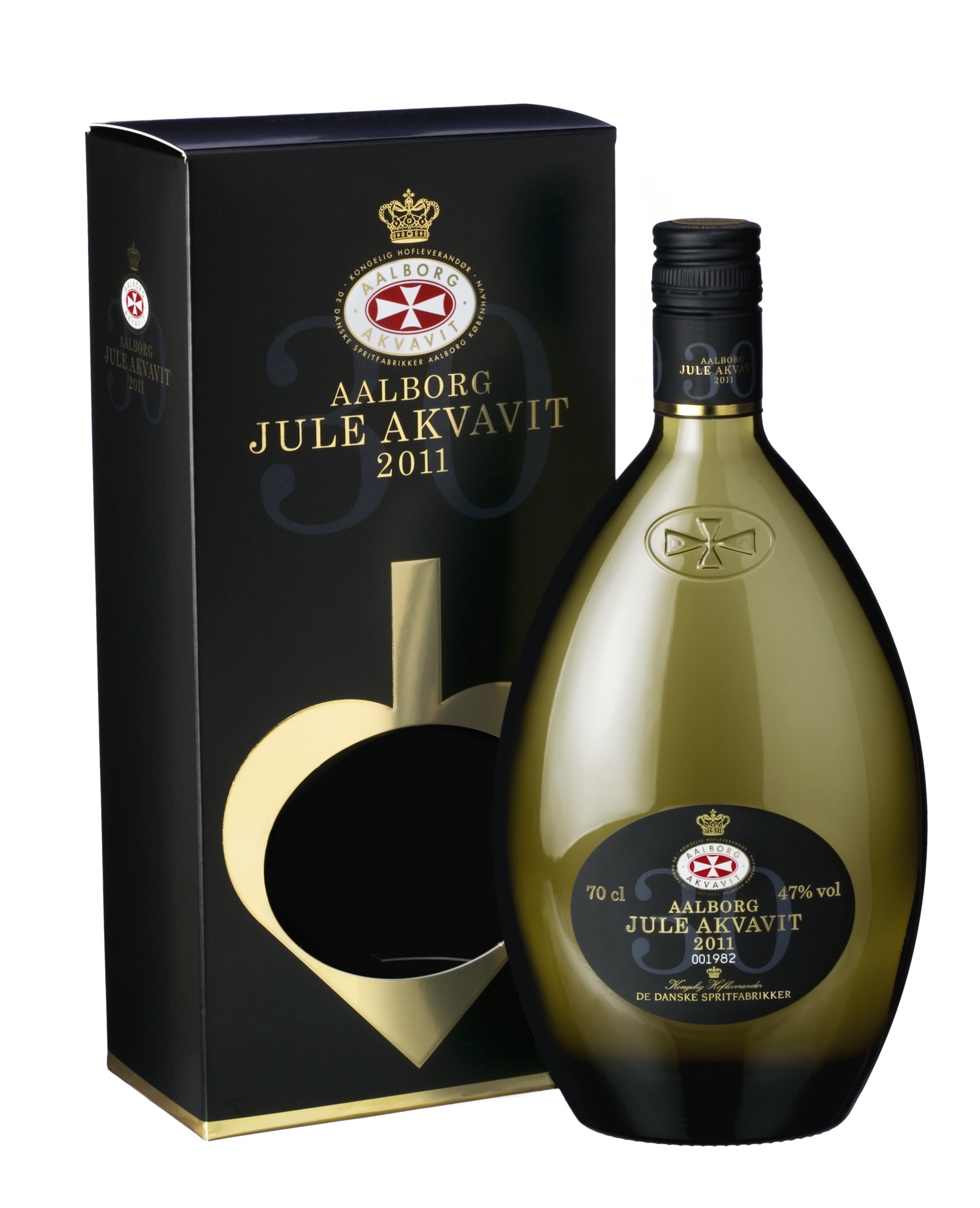 Om Aalborg Jule Akvavit- 30. udgave af Aalborg Jule Akvavit i år. Tappes traditionen tro i en nydesignet smuk flaske og, som noget nyt, i et begrænset antal nummererede flasker. Kongehuset modtager de første unummererede flasker præget med Hendes Majestæt Dronningens navn
