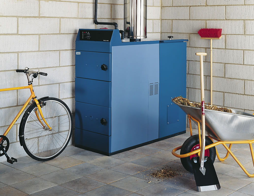 Kedlen fra Baxi, brænder træpiller, skovflis og korn og kræver næsten ingen pasning