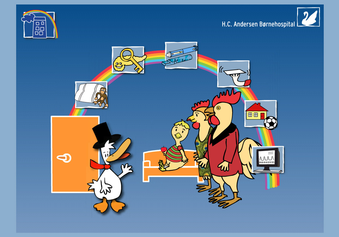På H. C. Andersen Børnehospital i Odense får de mindste patienter mellem tre og syv år hjælp af HC And på Internettet. Iklædt hvide fjer og høj sort hat hjælper den lille and børnene med - i deres eget tempo - at klikke og lege sig frem til at forstå den ofte lidt skræmmende hospitalsverden. På http://hcand.ouh.dk viser animerede tegnefilm, hvad der sker, når børnene for eksempel skal have taget en blodprøve, bedøves, have lagt en arm i gips eller et kateter op. Og hvis de skal have undersøgt lungerne eller priktestes for allergi.