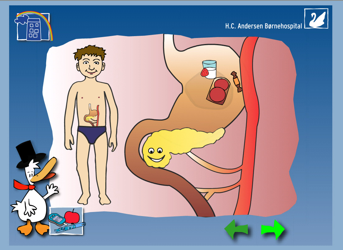 Og lige nu er siderne om HC And blevet udvidet. Denne gang med interaktive sekvenser, der forbereder børn med diabetes type 1 på indlæggelse og behandling. Det er første gang, der direkte for børn er vist og forklaret et diabetesforløb. Lige fra sygdommens opståen over indlæggelsen til de efterfølgende kontrolbesøg på ambulatoriet.