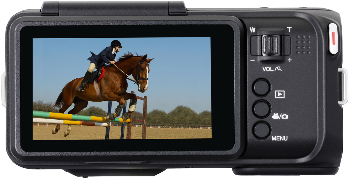 Forsynet med 10 gange optisk zoom og 32 GB intern Flash hukommelse samt SDXC slot kan hybridkameraet optage op til 2 timer højhastigheds video med 250 billeder per sekund.