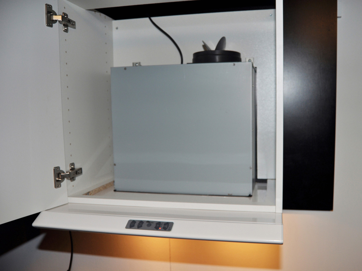 Super Silent FT monteres under et overskab med krydderihylde og koster fra 2.999 kroner vejl. Fås hos forhandlere af køkkener og hvidevarer. Nærmere oplysninger på tlf. 98 92 62 33 og www.thermex.dk.