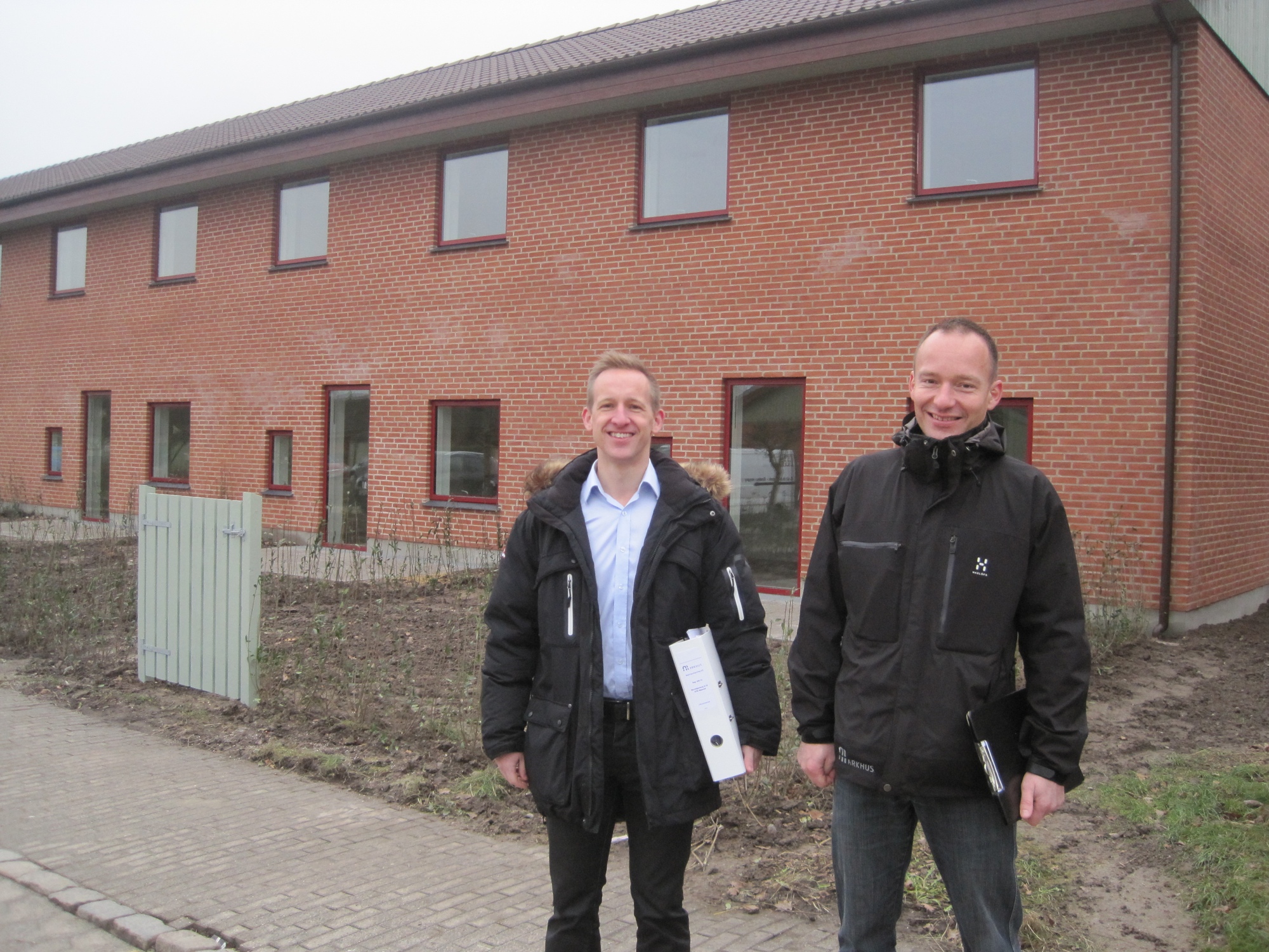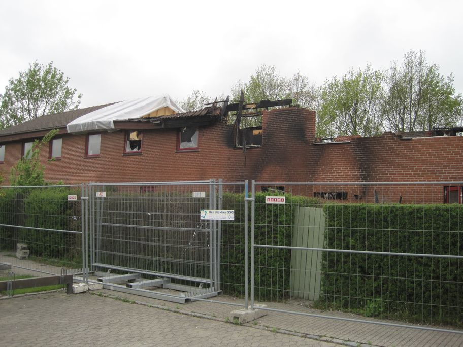 Fem rækkehuse på Skovstjernevej i Næstved er genopført og klar til indflytning - efter at være nedbrændt som følge af drenges leg med et vildfarent romerlys.