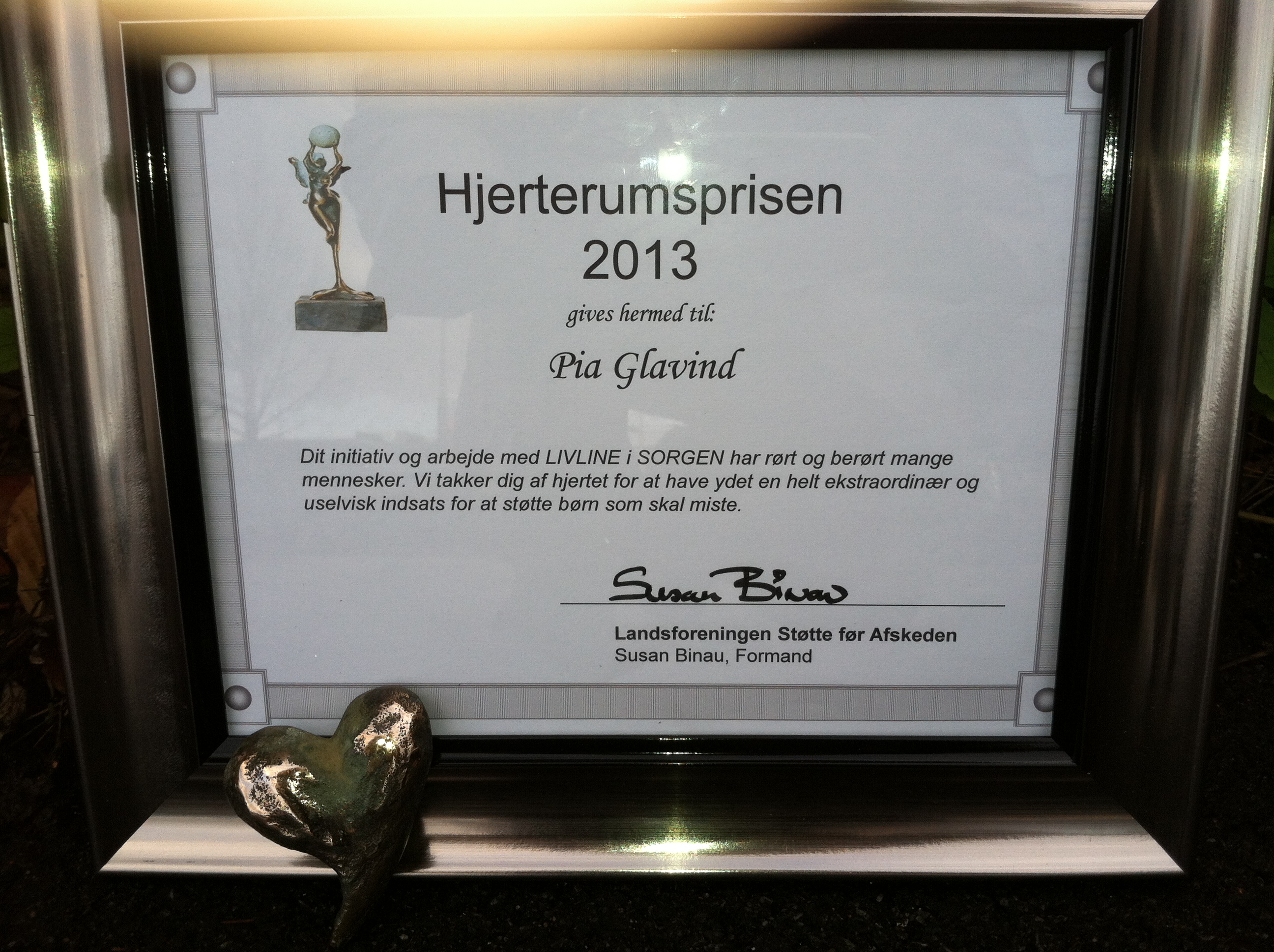 Hjerterumsprisen blev overrakt til Pia Glavind ved privat arrangement.