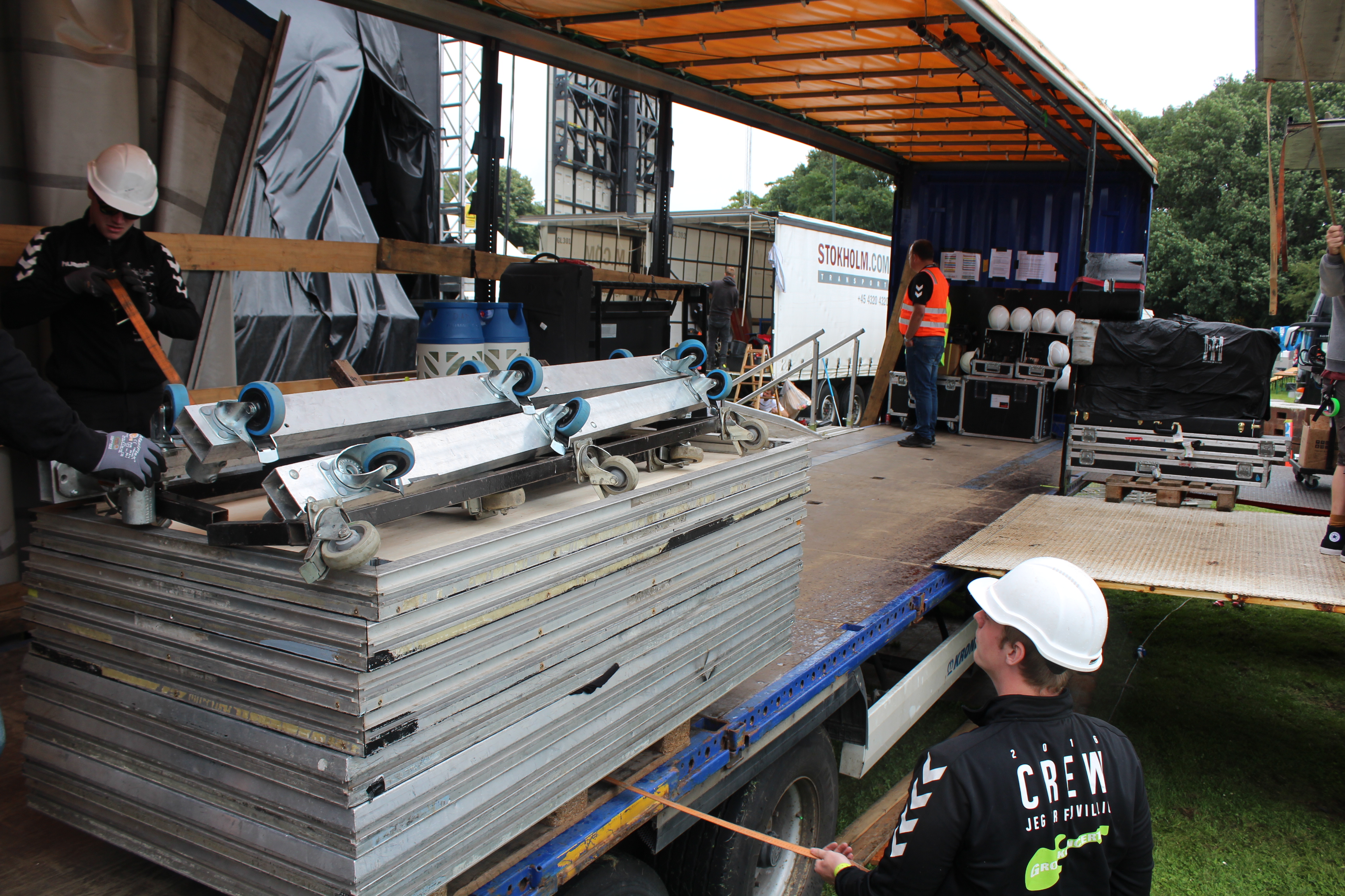 Imponerende logistikprojekt Der er tale om et af Danmarks største og mest imponerende logistik-projekter, hvor 55 lastbiltræk og 17 busser fragter kunstnere, medarbejdere, frivillige og tonsvis af udstyr gennem Danmark. Rygraden i de populære sommerkoncerter udgøres af de omkring 750 frivillige, der kaldes Det Grønne Crew eller "Kræwet". I forbindelse med hver koncert stiller "kræwet" to store scener, lydudstyr, toiletvogne, provianttelte, hegn, skilte og alt det udstyr op, der skal til for at afvikle arrangementerne professionelt og sikkert.