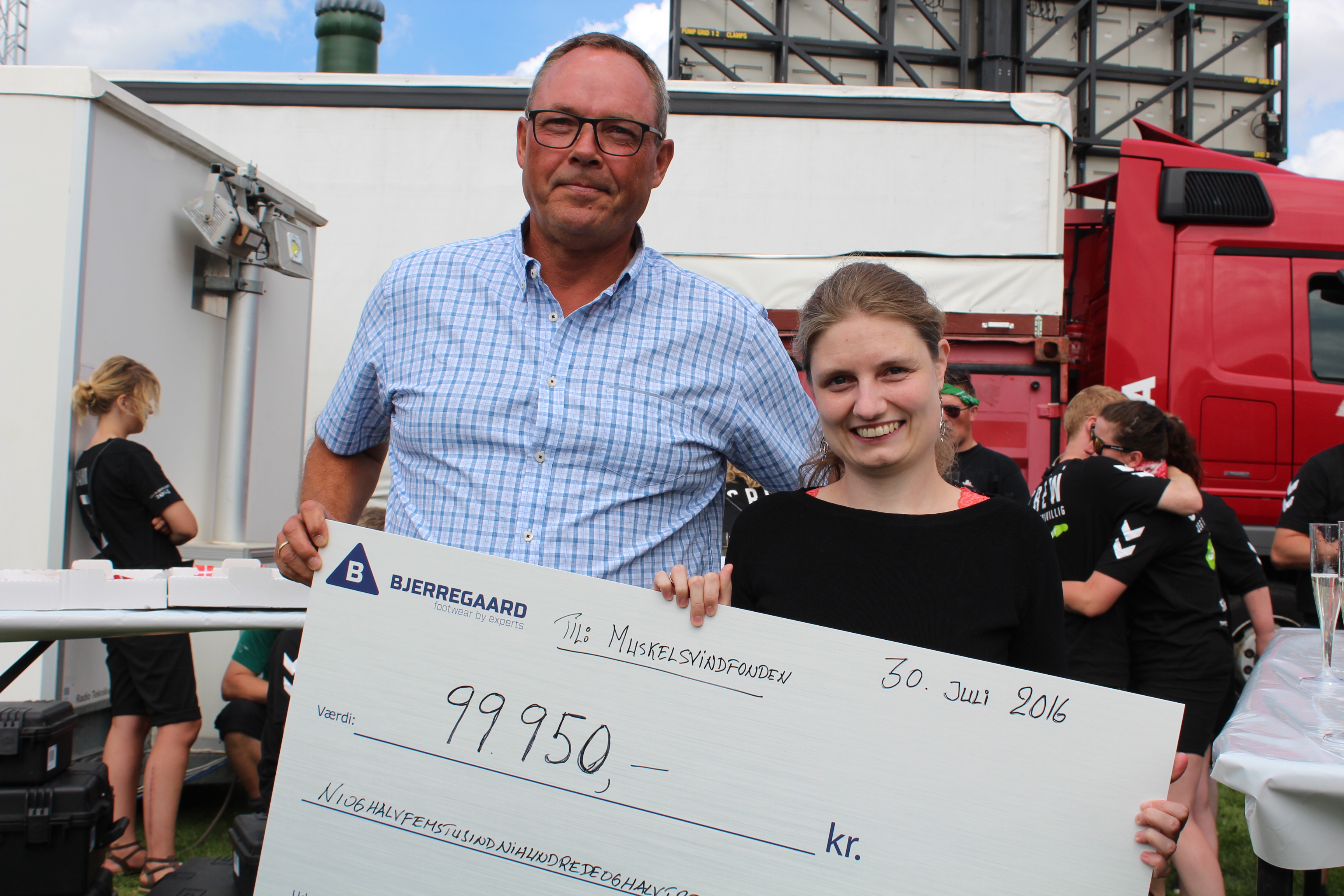 - Man støtter jo ikke bare Muskelsvindfondens arbejde ved at komme til Grøn Koncert. Vi giver en oplevelse igen. Og donationen fra Bjerregaard Sikkerhed er jo skabt på samme måde. Kunderne som har købt sko fra Bjerregaard har ikke bare givet en donation til Muskelsvindfonden i en indsamlingsbøsse på disken, de har fået et par sikkerhedssko med i prisen. Den slags donationer, hvor der er noget for begge parter, kan vi godt lide, sagde den nyvalgte formand for Muskelsvindfonden, Lisbeth Koed Doktor.