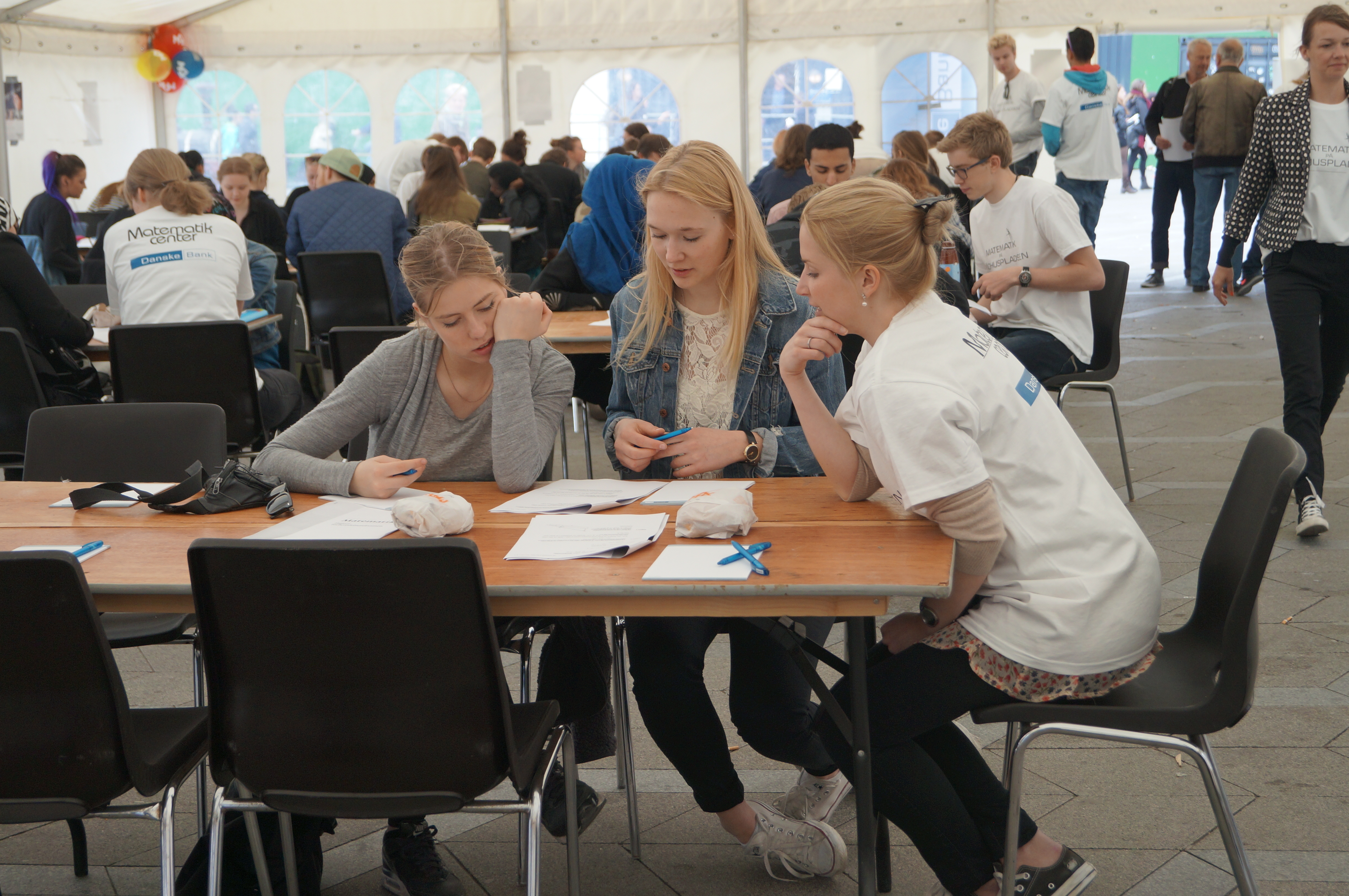 Elever på de danske gymnasier, tekniske skoler og handelsgymnasier sidder i disse uger og forbereder sig på deres eksamen i matematik. Frivillige fra Matematikcenter og ansatte i Danske Bank er eksamenshjælpere, når op mod 200 elever får hjælp til at forberede sig i en stor Eksamenscafé den 13. maj i København.