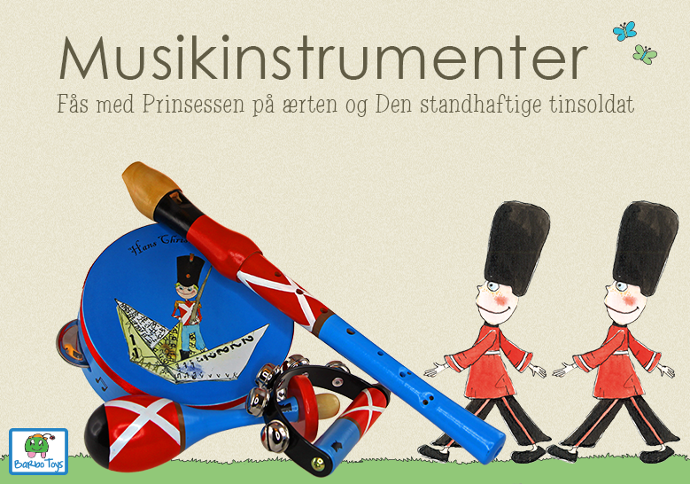 Den Standhaftige Tinsoldat og Prinsessen på ærten kan nu fås som musikinstrumenter med smukke illustrationer. Den ideelle lille julegave til det musikglade barn.