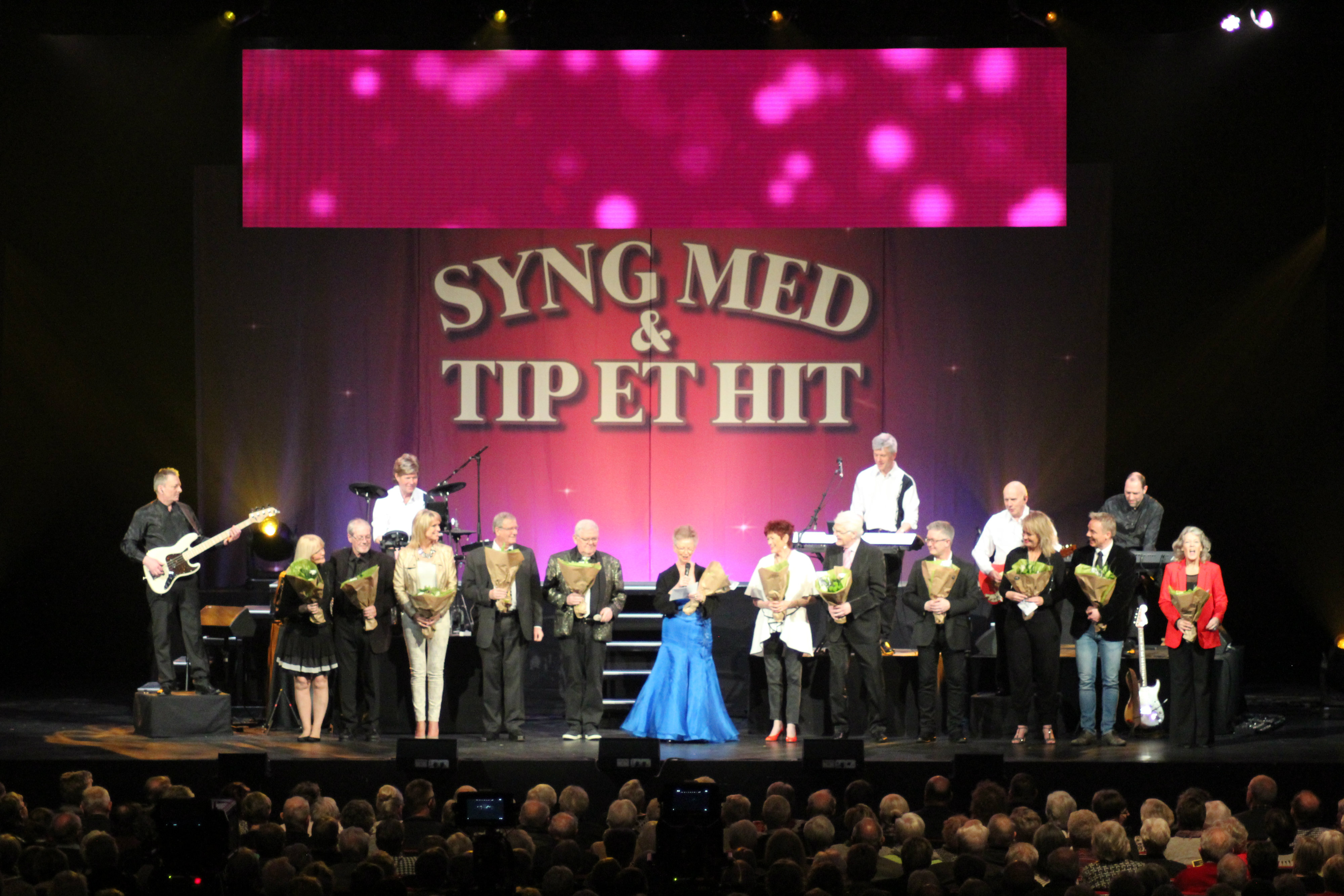 Musikshowet Syng Med & Tip Et Hit blev første gang sendt i efteråret på DK4. I udsendelserne spilles en række populære hits fra flere årtier, og hjemme i stuerne kan publikum så gætte forskellige spørgsmål om de enkelte melodier. Torsdag aften var TV-stationen til stede under en af de traditionelle Syng Med-koncerter for at skyde optagelser til en række nye udsendelser i foråret. Syng Med-koncerterne arrangeres af oplysningsforbundet AOF og har i årevis trukket fulde huse i Kultur- og Kongrescentret.