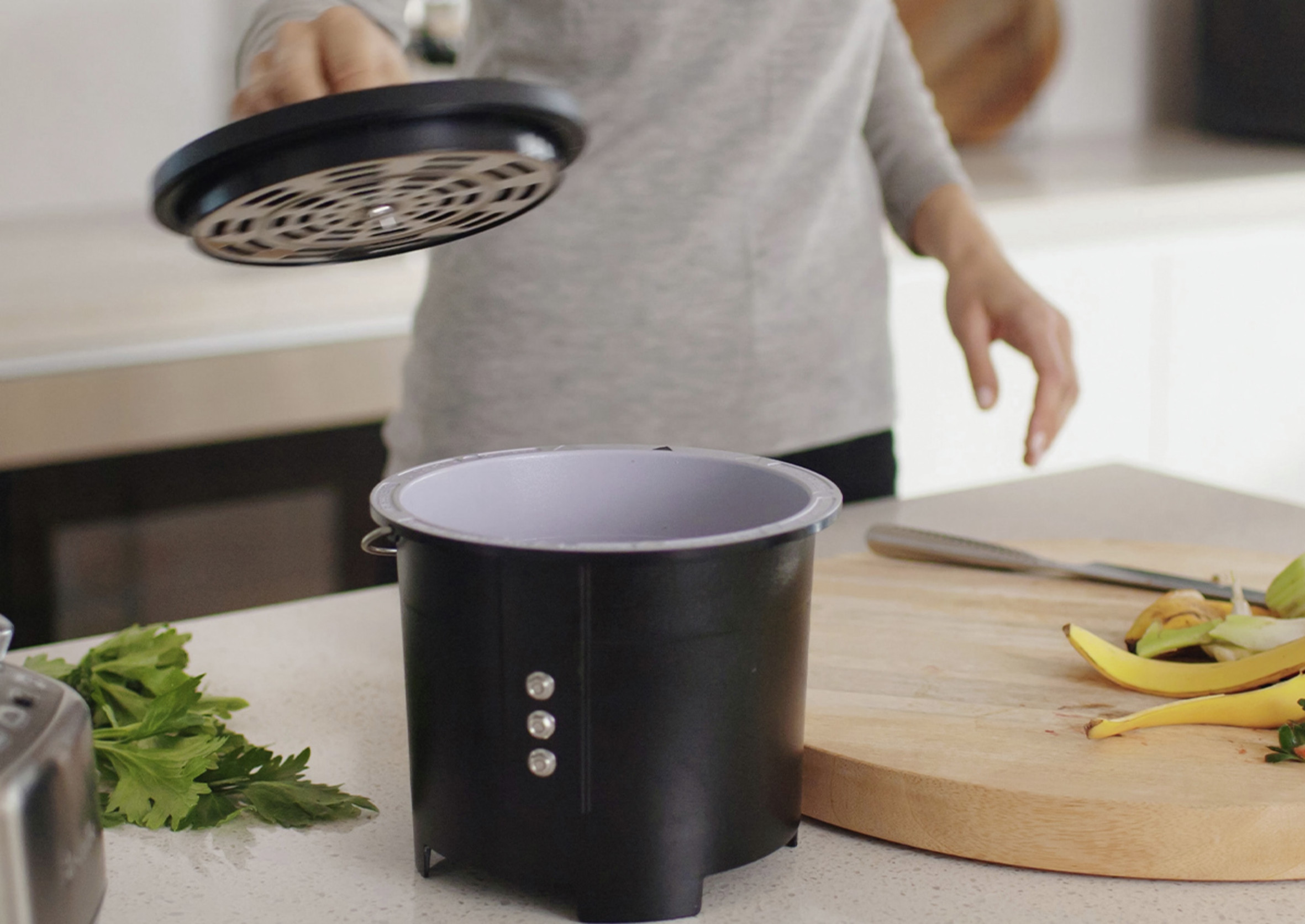 Sage Food Cycler er nem at bruge. Tryk på knappen, og det unikke kulstoffiltreringssystem eliminerer lugt, hvilket gør den perfekt til indendørs brug. Med lavt energiforbrug og støjsvag drift kan Sage Food Cycler placeres hvor som helst i køkkenet.