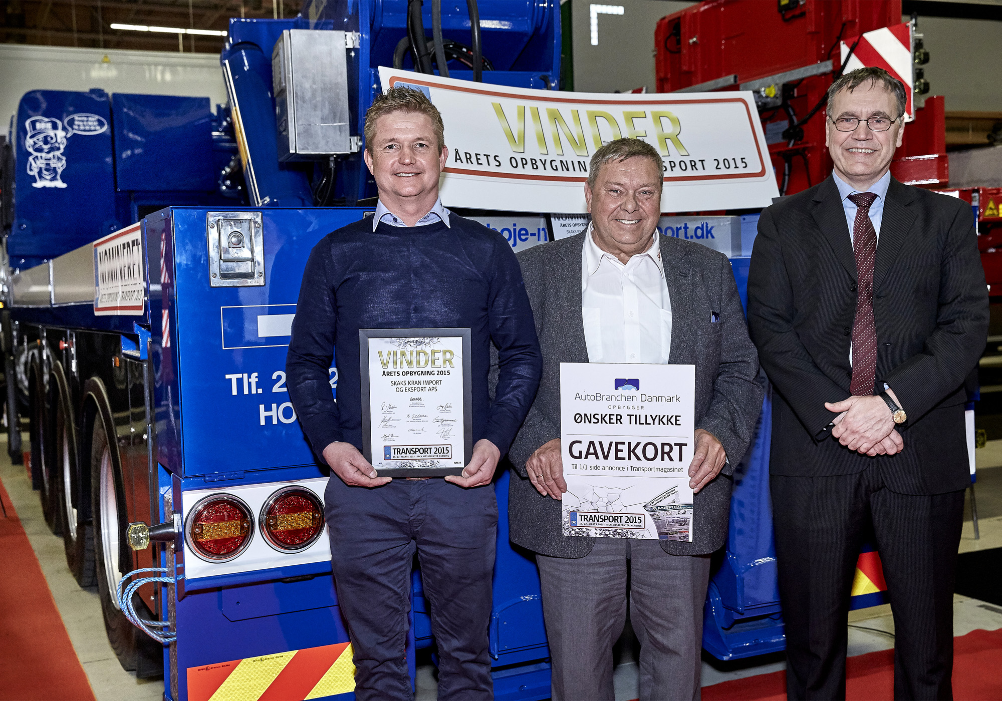 Fredag formiddag blev de tre nominerede til titlen som Årets Opbygning afsløret på Transport 2015 - Skandinaviens største indendørs transportmesse, der afholdes i MCH Messecenter Herning. Spændingen kulminerede til den store branchefest lørdag aften, da Magnus Skak fra Skaks Kran Import & Eksport blev kåret som vinder.